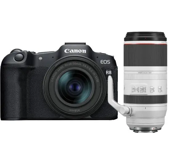 Aparat Canon EOS R8 + RF 24-50 mm f/4.5-6.3 IS STM + RF 100-500mm f/4.5-7.1L IS USM
