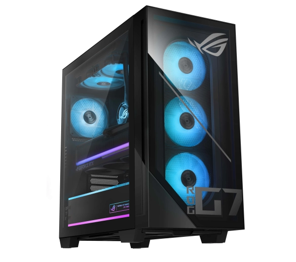 <h2>NARODZINY LEGENDY</h2><h3>WYDAJNOŚĆ</h3><h4>Wysoka wydajność dla graczy</h4><p>Komputer został zaprojektowany z myślą o wymagających graczach. Wyposażony w procesor Intel® Core™ Ultra 9 oraz kartę graficzną NVIDIA GeForce RTX™ serii 50, zapewnia płynną rozgrywkę na najwyższym poziomie. Dzięki dużej ilośći szybkiej pamięci RAM (Random Access Memory) DDR5 (Double Data Rate 5) możesz jednocześnie grać, streamować i komunikować się ze znajomymi bez żadnych opóźnień. Szybki dysk PCIe (Peripheral Component Interconnect Express) skraca czasy ładowania i oferuje miejsce na Twoją kolekcję gier.</p><ul> <li>System operacyjny Windows 11</li> <li>Procesor Intel® Core™ Ultra 9</li> <li>Karta graficzna NVIDIA® GeForce RTX™ serii 50</li> <li>Nawet DDR5 4800 MHz (Megahertz) pamięć operacyjna</li></ul><h3>KARTA GRAFICZNA</h3><h4>Pełna dominacja</h4><p>Model ROG (Republic Of Gamers) G700 został wyposażony w układ graficzny NVIDIA® GeForce RTX™ 50, co gwarantuje najwyższą jakość obrazu zarówno w obecnych, jak i nadchodzących tytułach. Niezależnie od tego, czy grasz w e-sportowe produkcje, czy w najbardziej wymagające gry o najwyższych wymaganiach sprzętowych, możesz cieszyć się wysoką liczbą klatek na sekundę i maksymalnymi ustawieniami graficznymi dzięki zaawansowanym technologiom, takim jak Deep Learning Super Sampling (DLSS) i Frame Generation (Generowanie klatek).</p><ul> <li>GeForce RTX serii 50 Perfekcyjna platforma dla Graczy i Twórców</li> <li>Rdzenie Tensor 5 generacji Maksymalna wydajność AI (Artificial intelligence)</li> <li>Nowe Multiprocesory Streamingu Optymalizacja pod shadery neuronowe</li> <li>Rdzenie Ray Tracingu 4 generacji Z myślą o Mega Geometry</li></ul><h3>PROCESOR</h3><h4>Gotowy na każde wyzwanie</h4><p>Sercem ROG G700 jest nowoczesny procesor Intel® Core™ Ultra, który zapewnia moc obliczeniową niezbędną do płynnej rozgrywki, streamowania, edycji wideo oraz wielozadaniowej pracy. Bez względu na to, jakie wyzwania przed nim postawisz, ten procesor poradzi sobie bez problemu.</p><h3>PŁYTA GŁÓWNA ASUS</h3><h4>Niezawodność na najwyższym poziomie</h4><p>Podstawą systemu jest solidna płyta główna ASUS, zaprojektowana z myślą o trwałości i wydajności. Radiatory na układzie VRM (Voltage Regulator Module) i chipsecie gwarantują stabilność pracy, a obsługa Aura Sync oraz szybkie porty I/O (Input/Output) sprawiają, że komputer sprosta wymaganiom nawet najbardziej zaawansowanych użytkowników.</p><h3>Chłodzenie</h3><h4>Zaawansowane chłodzenie</h4><p>ROG G700 został wyposażony w system czterech wentylatorów, który skutecznie obniża temperaturę podzespołów, zapewniając optymalną wydajność nawet podczas długich sesji grania. Standardowa konfiguracja obejmuje trzy wentylatory wlotowe i jeden wylotowy, zapewniając swobodny przepływ powietrza. Modele z chłodzeniem cieczą posiadają dodatkowe dwa wentylatory na radiatorze, które usuwają ciepłe powietrze przez górny panel. Możesz wybrać między klasycznym chłodzeniem powietrzem a systemem AiO (All in One) 240 mm, który zapewni jeszcze lepszą kontrolę temperatury.</p><h3>DESIGN</h3><h4>Ikoniczny design</h4><p>ROG G700 wyróżnia się charakterystycznym wyglądem, od razu kojarzonym z marką Republic of Gamers. Szklany panel przedni z logotypami „ROG Slash” i „Fearless Eye” nadaje mu wyjątkowy styl, a precyzyjne połączenie szkła z metalową ramą tworzy spójną i elegancką konstrukcję.</p><h3>Połączenia</h3><h4>Zachowaj łączność</h4><p>Zapomnij o opóźnieniach i problemach z łącznością. ROG G700 obsługuje szybkie połączenie przewodowe dzięki portowi LAN (Local Area Network) 2,5 Gb/s (gigabit na sekundę), co zapewnia płynność w grach i błyskawiczne przesyłanie plików. Dodatkowo obsługa Wi-Fi 6 minimalizuje zakłócenia i gwarantuje stabilne połączenie nawet w zatłoczonych sieciach bezprzewodowych.</p><ul> <li>Wi-Fi 6 Ultra Low Latency</li> <li>2.5G LAN wykorzystaj ultraszybkie połączenia internetowe</li></ul><h3>Oprogramowanie</h3><h4>Aura Sync</h4><p>Komputer oferuje pełną integrację z technologią Aura Sync, dzięki czemu możesz zsynchronizować efekty świetlne ze wszystkimi kompatybilnymi komponentami i akcesoriami. Bogata paleta 16 milionów kolorów i szeroki wybór efektów pozwolą Ci stworzyć unikalne stanowisko gamingowe dopasowane do Twojego stylu.</p><h4>Armoury Crate</h4><p>Dzięki aplikacji Armoury Crate masz pełną kontrolę nad swoim komputerem. Możesz monitorować temperaturę podzespołów, dostosowywać ustawienia systemowe i personalizować oświetlenie RGB (Red Green Blue). Dodatkowo, ekskluzywne oferty gier sprawią, że Twoja biblioteka zawsze będzie pełna.</p><h2>ASUS – marka godna zaufania</h2><p>2 lata gwarancji</p><p>Przodujący producent komputerówi elektroniki użytkowej</p><p>Ponad 30 lat doświadczeniaw rozwoju technologii</p>