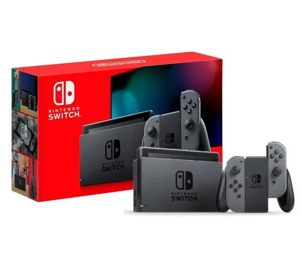 Wyposażenie: konsola Nintendo Switch, 2x kontroler Joy-Con, stacja dokująca, 2x pasek na rękę Joy-Con, uchwyt Joy-Con, adapter AC, kabel HDMI
