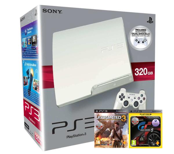 Sony PlayStation 3 (biały) + 2 pady + 2 gry
