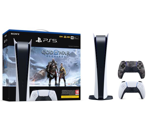 Konsola Sony PlayStation 5 Digital Edition (PS5) + dodatkowy pad (szary kamuflaż) + God of War Ragnarok