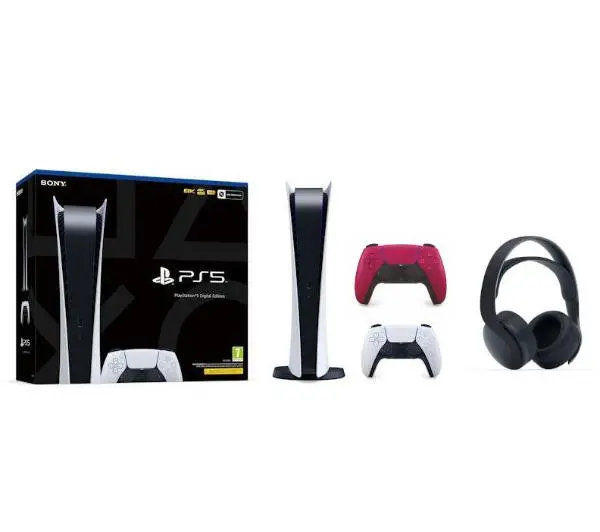 Konsola Sony PlayStation 5 Digital (PS5) + Słuchawki PULSE 3D Czarny + Dodatkowy Pad Czerwony