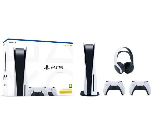 <h2>Sony PlayStation 5 (PS5) z napędem - dodatkowy pad (biały) - słuchawki PULSE 3D (biały)</h2>Wybierz Sony PlayStation 5, by Twoja wirtualna rozgrywka zyskała nowy wymiar. Perfekcyjna jakość obrazu, przestrzenny dźwięk ułatwiający rozeznanie się w wydarzeniach z gry oraz efekty dotykowe zapewniane przez kontroler DualSense sprawią, że Twoje zmysły będą w pełni zorientowane na akcję!Wysoka rozdzielczość obrazu i naturalna gra świateł – wyjście obrazu 8K i technologia Ray TracingOstry, płynny i bogaty w żywe kolory obraz dzięki odświeżaniu 120 Hz, rozdzielczości 4K oraz funkcji HDR Zorientuj się w otoczeniu, korzystając ze zmysłu słuchu – wielokierunkowy dźwięk Tempest 3D AudioTech Dodatkowe efekty dźwiękowe i dotykowe zapewnia zupełnie nowy gamepad DualSenseDysk SSD o pojemności 825 GB – szybsze uruchamianie gier i więcej miejsca na ulubione tytułyRozpocznij zabawę w trybie co-op i multiplayer dzięki drugiemu kontrolerowi DualSenseZestaw słuchawkowy PULSE 3D umożliwia swobodną komunikację ze współgraczami<h2>Poznaj konsolę do gier Sony PlayStation 5</h2> Ostry obraz i naturalne światłoKonsola do gier Sony PlayStation 5 odmieni Twój sposób patrzenia na grafikę komputerową. Teraz zyska ona prawdziwie kinowy rozmach i jeszcze mocniej wciągnie Cię do wirtualnego świata. Urządzenie z wejściem 8K pozwala na osiągnięcie obrazu o rozdzielczości sięgającej nawet 4320p! Całość dodatkowo podkręca technologia Ray Tracing, dzięki której wszelkie efekty świetlne wyglądają bardziej naturalnie – od promieni słonecznych odbijających się na tafli wody, po najbardziej spektakularne wybuchy! Zaawansowane technologieNie ma nic bardziej irytującego od rozmazującego się lub wręcz zacinającego obrazu. Z prezentowaną konsolą na szczęście nie musisz się obawiać podobnych sytuacji. Sony PlayStation 5 pozwala na uzyskanie płynnych scen dzięki odświeżaniu na poziomie sięgającym nawet 120 Hz przy rozdzielczości 4K. Usłysz więcejOdpal na swojej konsoli gry najnowszej generacji i czerp z nich to, co najlepsze! Sony PlayStation 5 umożliwi uruchamianie tytułów obsługujących technologię brzmienia Tempest 3D AudioTech. To właśnie dzięki niej wszelkie odgłosy w grach zyskują przestrzenny wymiar, co pomoże Ci się zorientować w bieżącej sytuacji – łatwiej ocenisz kierunek, z jakiego dobiegają rozmaite dźwięki. Bezprzewodowy padWłącz do gry zmysł dotyku! Sony PlayStation 5 to model wyposażony w innowacyjny gamepad DualSense, który w czasie rzeczywistym reaguje na wydarzenia na ekranie, emitując rozmaite efekty dotykowe. Co więcej, w kontroler został także wbudowany mikrofon, a zatem możesz się porozumiewać ze współgraczami bez konieczności sięgania po słuchawki. Bez zbędnego czekaniaSony PlayStation 5 pozwoli Ci skrócić czas oczekiwania na ulubioną rozrywkę! W konsoli zastosowany został szybki dysk SSD, dzięki któremu gry uruchamiają się o wiele sprawniej od tych zainstalowanych na tradycyjnym dysku HDD. Pojemność 825 GB pozwala natomiast na przechowywanie ulubionych tytułów na konsoli, by zawsze móc do nich wrócić. Rozrywka dla dwojgaChcesz pościgać się najlepszymi furami świata z dzieckiem? A może pokonywać przeszkody świata fantasy wraz ze swoją drugą połówką? Sony PlayStation 5 da Ci taką możliwość! Wraz z konsolą otrzymasz bowiem aż 2 gamepady, więc od razu po zakupie produktu możesz uruchomić ulubioną grę w trybie co-op oraz multiplayera i zaprosić do wspólnej zabawy drugą osobę. Wspólnie spędzone chwile z pewnością Was zbliżą i dadzą sporo satysfakcji! Słuchawki PULSE 3DUwielbiasz grać online i jednocześnie komunikować się z innymi graczami? W takim razie dla najwyższego komfortu rozgrywki skorzystaj z dołączonych do konsoli do gier Sony PlayStation 5 słuchawek PULSE 3D. Dzięki nim nie tylko łatwiej wsłuchasz się w wielokierunkowy dźwięk z gry, ale również swobodnie przeprowadzisz ważne dyskusje. 2 mikrofony oraz redukcja szumów sprawiają, że współgracze usłyszą Twój głos krystalicznie czysto!<h2>Zawartość opakowania Sony PlayStation 5</h2>W opakowaniu Konsola do gier 2 pady DualSense Zestaw słuchawkowy PULSE 3D Kabel HDMI Kabel USB Kabel zasilający Podstawka Instrukcja obsługi w języku polskimSony – marka godna zaufaniaMiędzynarodowy zasięgGlobalna marka z japońskimi korzeniamiTopowy producentJeden z największych producentów elektroniki użytkowej na świecieWieloletnie doświadczenieInnowacyjne technologie tworzone od 1946 roku