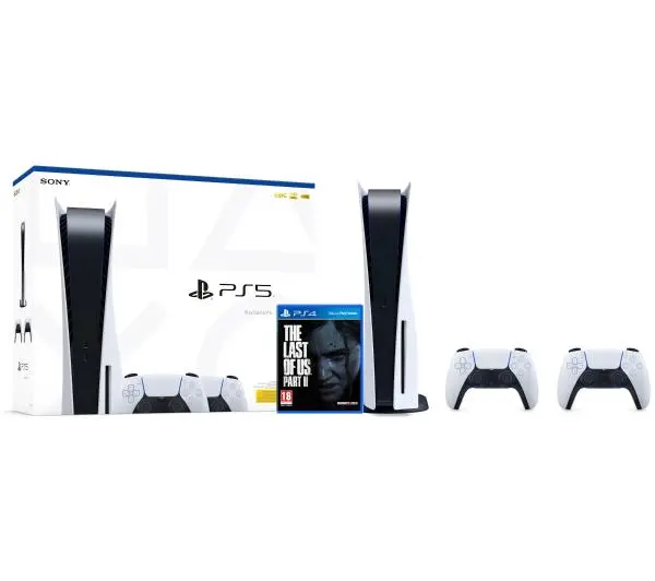 <h2>Sony PlayStation 5 (PS5) z napędem - dodatkowy pad (biały) - The Last of Us Part II</h2>Wybierz konsolę do gier, która zapewni Ci niezapomniane wrażenia z każdej rozgrywki. Sony PlayStation 5 oferuje niezrównaną jakość obrazu i dźwięku, a dzięki specjalnemu kontrolerowi dostarcza także ciekawe efekty sensoryczne. Wraz z urządzeniem otrzymasz bijącą rekordy popularności grę The Last of Us Part II.Zniewalający obraz dzięki wyjściu 8K oraz technologii regulowania zjawisk świetlnych Ray TracingRozdzielczość 4K, odświeżanie 120 Hz oraz HDR tworzą ostry, płynny i naturalny obrazTechnologia dźwięku przestrzennego Tempest 3D AudioTech pozwoli Ci się lepiej odnaleźć w otoczeniu gryKontroler DualSense umożliwia komunikację ze współgraczami i dostarcza ciekawych wrażeń sensorycznychBłyskawiczne uruchamianie konsoli i zainstalowanych gier dzięki dyskowi SSD 825 GBPad dla drugiej osoby – możliwość grania w ulubione tytuły w trybie co-op i multiplayerWraz z konsolą otrzymasz osadzoną w postapokaliptycznym świecie grę The Last of Us Part II<h2>Poznaj konsolę do gier Sony PlayStation 5</h2> Realizm na wysokim poziomieKonsola do gier Sony PlayStation 5 została wyposażona w wyjście 8K, dzięki któremu możliwe jest uruchamianie gier w rozdzielczości nawet do 4320p! Dzięki temu obraz jest ostry i bardziej szczegółowy niż kiedykolwiek wcześniej. Mało tego, nad jego naturalnym wyglądem przez cały czas pracuje technologia Ray Tracing, dzięki której wszystkie efekty świetlne są odpowiednio dopracowane - zarówno połyskujące we włosach promienie słońca, jak i spektakularne eksplozje. Płynne i pełne kolorów scenyAby uzyskać najlepszą jakość obrazu, podłącz urządzenie Sony PlayStation 5 do telewizora z funkcją HDR. Wówczas zachwyci Cię bogactwo widocznych na ekranie kolorów. To w połączeniu z rozdzielczością 4K oraz odświeżaniem na poziomie nawet do 120 Hz sprawi, że wszystkie sceny pozostaną ostre i realistyczne, nawet jeśli będą wyjątkowo dynamiczne i żywiołowe. Precyzyjny dźwiękSony PlayStation 5 w pełni zaangażuje do gry Twój zmysł słuchu. Pozwala bowiem na wydobycie przestrzennego brzmienia z gier obsługujących technologię Tempest 3D AudioTech. Oznacza to, że możesz lepiej rozpoznać wirtualne otoczenie za pomocą słuchu – łatwiej określisz, z jakich kierunków dobiegają do Ciebie dźwięki, co pomoże w zlokalizowaniu zagrożeń. Dopracowany gamepadDołączony do modelu Sony PlayStation 5 gamepad DualSense zapewnia dodatkowe efekty dotykowe i dźwiękowe, co urozmaici każdą rozgrywkę. Co więcej, w tym modelu znajdziesz wbudowany mikrofon, a zatem możesz komunikować się z pozostałymi członkami drużyny bez konieczności sięgania po specjalny zestaw słuchawkowy. Szybki i pojemny dyskNie trać czasu na czekanie. Sony PlayStation 5 sprawi, że uruchamianie gier nie będzie się już wiązało z długimi minutami wpatrywania się w ekran ładowania. Jest to zasługą zastosowania nowoczesnego dysku SSD, który pracuje o wiele szybciej od tradycyjnych dysków HDD, a ponadto oferuje aż 825 GB miejsca na Twoje pliki. Zaproś do gry drugą osobęChcesz, by Twoja druga połówka zaraziła się Twoją pasją do gier wideo? Sony PlayStation 5 Ci to ułatwi! Z tą konsolą otrzymasz bowiem drugi gamepad, więc od razu po zakupie swojego sprzętu do gier możesz odpalać ulubione tytuły w trybie multiplayer i współdzielić zabawę z pozostałymi domownikami. To świetny sposób na zacieśnianie więzów ze swoją pociechą lub pomysł na spędzenie rozrywkowego wieczoru tylko we dwoje. The Last of Us Part II w zestawieKonsola do gier Sony PlayStation 5 ponownie zabierze Cię do zmęczonego epidemią, postapokaliptycznego świata. Grzyb maczużnika przemieniający ludzi w agresywne stwory nie daje za wygraną, a dodatkowym zagrożeniem są również niezarażeni, którym zatarły się granice człowieczeństwa. Zanurz się w mroczną kontynuację historii Joela i Ellie i poznaj dalsze losy ludzkości, delektując się przy tym kinową, niezwykle wciągającą fabułą.<h2>Zawartość opakowania Sony PlayStation 5</h2>W opakowaniu Konsola do gier 2 pady DualSense Gra The Last of Us Part II Kabel HDMI Kabel USB Kabel zasilający Podstawka Instrukcja obsługi w języku polskimSony – marka godna zaufaniaMiędzynarodowy zasięgGlobalna marka z japońskimi korzeniamiTopowy producentJeden z największych producentów elektroniki użytkowej na świecieWieloletnie doświadczenieInnowacyjne technologie tworzone od 1946 roku