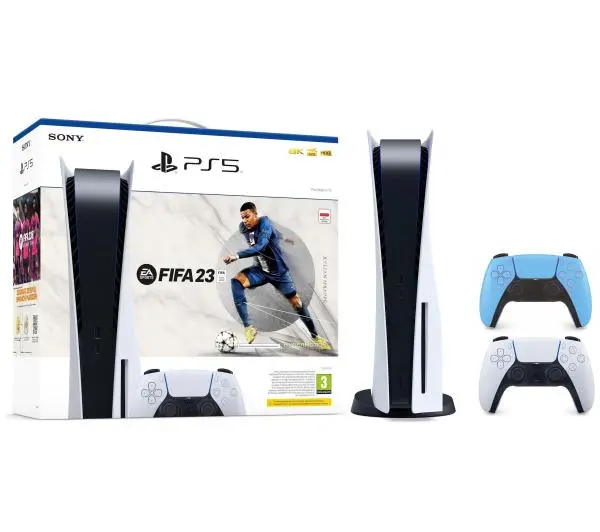 Konsola Sony PlayStation 5 (PS5) z napędem + FIFA 23 + Dodatkowy Pad Niebieski