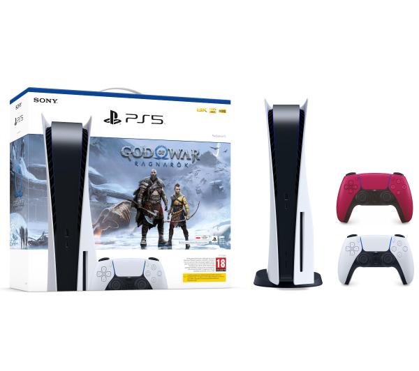 Konsola Sony PlayStation 5 (PS5) z napędem + dodatkowy pad (czerwony) + God of War Ragnarok