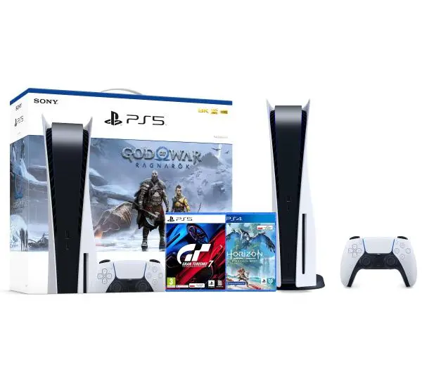 Konsola Sony PlayStation 5 (PS5) z napędem + God of War Ragnarok + Horizon Forbidden West + Gran Turismo 7