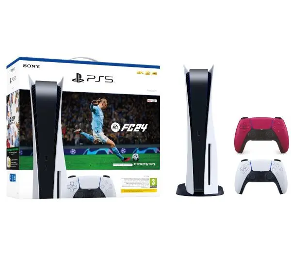 Konsola Sony PlayStation 5 (PS5) z napędem + Dodatkowy Pad Czerwony + EA SPORTS FC 24