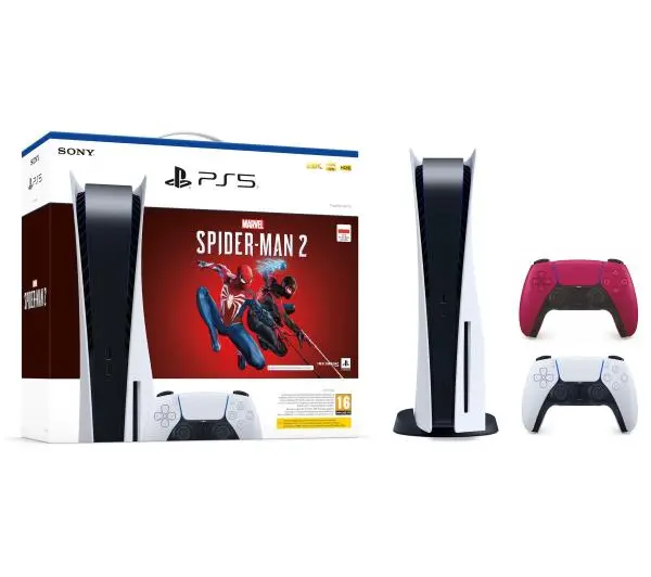 Konsola Sony PlayStation 5 (PS5) z napędem + Dodatkowy Pad Czerwony + Marvel’s Spider-Man 2