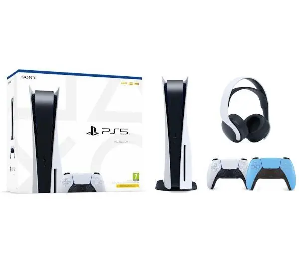 Konsola Sony PlayStation 5 (PS5) z napędem + Słuchawki PULSE 3D Biały + Dodatkowy Pad Niebieski