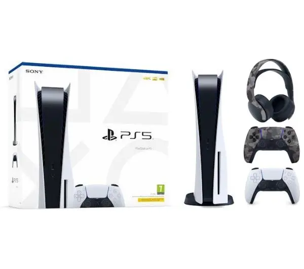 <h2>Sony PlayStation 5 (PS5) z napędem + słuchawki PULSE 3D (szary kamuflaż) + dodatkowy pad (szary kamuflaż)</h2>Odkryj gaming w najlepszym wydaniu! Naszpikowana zaawansowanymi, innowacyjnymi technologiami konsola Sony PlayStation 5 zapewni ci niespotykane wrażenia podczas gry. W tym zestawie znajdziesz również drugiego pada i doskonale zoptymalizowane słuchawki Pulse 3D, co pozwoli dodatkowo spotęgować emocje.Fotorealizm grafiki, czyli obsługa rozdzielczości do 8K i technologii śledzenia promieni (ray tracing)Rozdzielczość 4K przy częstotliwości odświeżania 120 Hz i HDR dla niezrównanej jakości obrazu (w wybranych grach)Innowacyjny silnik Tempest 3D AudioTech, aby dźwięk mógł dosłownie cię otoczyćPrecyzyjne sterowanie, pogłębiona immersja i duży komfort dzięki nowemu kontrolerowi Sony DualSenseDysk SSD o pojemności 825 GB, który stoi za błyskawicznym ładowaniem gierWrażenia dla dwojga – dodatkowy, drugi pad dołączony do zestawuEfekty dźwiękowe na najwyższym poziomie zapewnione przez słuchawki Pulse 3D<h2>Poznaj konsolę Sony PlayStation 5</h2> Obraz, który robi niesamowite wrażenieSony PlayStation 5 umożliwia renderowanie i wyświetlanie obrazu jak (nomen omen) z obrazka – maksymalna obsługiwana przez konsolę rozdzielczość to 8K. Za fotorealizmem grafiki stoi natomiast ray tracing, czyli technologia śledzenia promieni, która sprawia, że zachowanie światła jest wyjątkowo wiernie oddane: zauważysz nie tylko świetlne refleksy oddziałujące z elementami otoczenia zupełnie jak w rzeczywistości, ale również większe zniuansowanie cieni i wszystkie skrywające się w nich detale. Jakość w parze z płynnościąRenderowanie na poziomie 120 klatek na sekundę, obsługa odświeżania z częstotliwością do 120 Hz na ekranach 4K i HDR w wybranych tytułach? To wszystko zapewni ci Sony PlayStation 5! Obraz o takich parametrach prezentuje się nad wyraz dobrze – jest zachwycająco wysokiej jakości, pełen wyrazistych detali, bogaty w intensywne, nasycone kolory i co ważne – niezwykle płynny. Otaczające brzmienieWysokiej jakości obraz to trochę za mało, aby zapewnić doskonałe wrażenia podczas grania, dlatego konsola Sony PlayStation 5 umożliwia korzystanie z dobrodziejstw technologii Tempest 3D AudioTech. To właśnie ona odpowiada za wyjątkowy, przestrzenny dźwięk, który otoczy cię bez względu na to, czy popłynie z głośników telewizora, czy też obsługujących to rozwiązanie słuchawek. Pełna kontrola w twoich rękachStworzony z myślą o Sony PlayStation 5 kontroler DualSense wyróżnia się zapewniającą komfort, przemyślaną konstrukcją i pozwala na własnej skórze poczuć to, co właśnie dzieje się na ekranie. Za skutecznym pogłębieniem immersji stoją dopracowane efekty dotykowe i adaptacyjne triggery, które doskonale odpowiadają rozgrywającym się wydarzeniom. Działanie na pełnej prędkościKonsola Sony PlayStation 5 jest wyposażona w dysk SSD, którego pojemność to 825 GB. Na szczególną uwagę zasługuje jednak jego szybkość – to między innymi dzięki niemu urządzenie działa z ponadprzeciętną prędkością, a zapisane gry ładują się wręcz błyskawicznie. Zapomnisz więc o uciążliwym czekaniu na rozpoczęcie nowej przygody lub wznowienie już toczącej się akcji. Granie we dwoje? Żaden problemSzukasz kompletnego zestawu, który zapewni rozrywkę nie tylko tobie? Sony PlayStation 5 trafi w twoje ręce nie z jednym, ale z aż dwoma kontrolerami DualSense. Co więcej, wersja kolorystyczna dodatkowego pada to intrygujący szary kamuflaż, który doskonale wpisuje się w militarną stylistykę. Dzięki tak skomponowanemu zestawowi nie będziesz potrzebować nic więcej, aby wspólnie z bliską ci osobą oddać się fascynującej rozgrywce w lokalnych grach wieloosobowych. Wszystko, co musisz usłyszećW tym zestawie znajdziesz nie tylko konsolę i dwa kontrolery, ale również wyjątkowe słuchawki Pulse 3D (podobnie jak dodatkowy pad – w wersji kolorystycznej szary kamuflaż), które zostały stworzone z myślą o doskonałej współpracy z Sony PlayStation 5. Zgodnie z tym, na co wskazuje nazwa, słuchawki obsługują technologię dźwięku przestrzennego, a ponadto za sprawą ich dopracowanej, dobrze przemyślanej konstrukcji, zapewniają one komfort na długie godziny.<h2>Zawartość opakowania Sony PlayStation 5</h2>W opakowaniu Konsola Pad DualSense (2 szt.) Słuchawki Pulse 3D Podstawka Kabel HDMI Kabel USB Kabel zasilający Instrukcja obsługiSony – marka godna zaufaniaMiędzynarodowy zasięgGlobalna marka z japońskimi korzeniamiTopowy producentJeden z największych producentów elektroniki użytkowej na świecieWieloletnie doświadczenieInnowacyjne technologie tworzone od 1946 roku