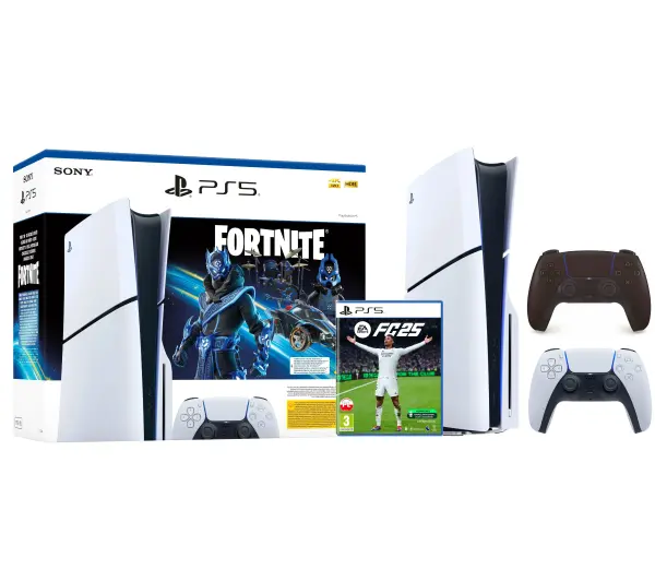 Konsola Sony PlayStation 5 Slim D Chassis (PS5) 1TB z napędem Fortnite Cobalt + Dodatkowy Pad Czarny + EA SPORTS FC 25