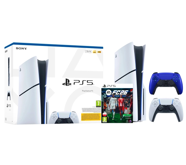 Konsola Sony PlayStation 5 Slim E Chassis (PS5) 1TB z napędem + Dodatkowy Pad Wieczorny kobalt + EA SPORTS FC 26