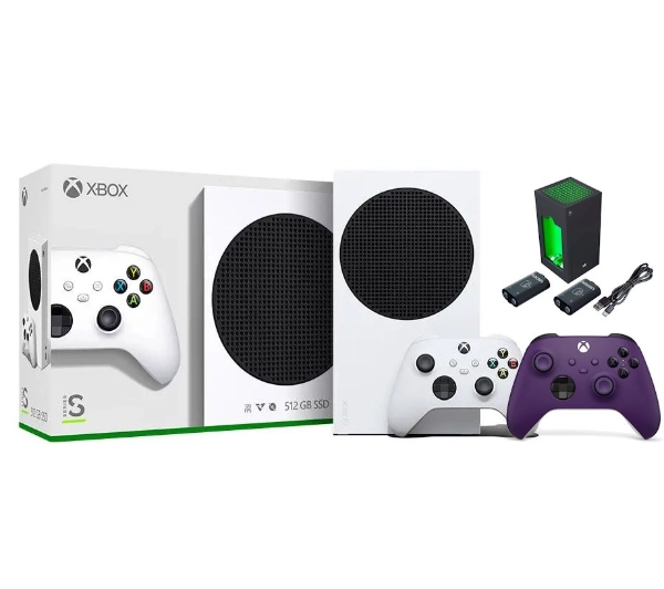 Konsola Xbox Series S 512GB + Dodatkowy Pad Astral Purple + Ładowarka Nacon XSX Battery Box