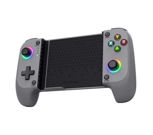 Trust - kontroler gamingowy do telefonu Świetny towarzyszGraj w każdej podróży oraz każdym miejscu na ziemii dzięki specjalnemu kontrolerowi do telefonów Trust. Kontroler wyposażony został w łączność Bluetooth 5.0 o bardzo niskim opóźnieniu oraz kompatybilność z smartfonami posiadającymi system Android jak i iOS.Trzy sposoby gryTen kontroler pozwala Ci na rozgrywkę na wiele sposobów! Z Mylox możesz grać nie tylko w gry mobilne, ale również świetnie sprawdzi się w przypadku przechwytywania strumieniowego tytułów z Playstation, Xbox, a także w grach przesyłanych z chmury Twojego komputera PC.Graj bez przerwyKontroler posiada wbudowany akumulator, dzięki któremu możesz grać nawet do 12 godzin bez przerwy!Zanurz się w grzeZanurz się w rozgrywce w ulubione tytuły z kontrolerem Trust Myrox. Jego wzmocnione wibracje pozwolą doznać jeszcze bardziej realistycznych wrażeń podczas rozgrywki, a dodatkowe podświetlenie LED RGB znajdujące się pod przyciskami doda przyjemnego klimatu.Pełna kompatybilnośćKontroler Myrox jest kompatybilny z każdym rozmiarem telefonów z oprogramowaniem Android lub iOS. Gumowe zabezpieczenie wyposażone w sprężyny pozwoli w bezpieczny sposób przechowywać Twój telefon, dzięki czemu będziesz mógł skupić się jedynie na rozgrywce.