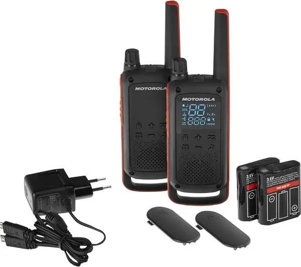 Wyposażenie: 2 krótkofalówki, instrukcja obsługi, ładowarka