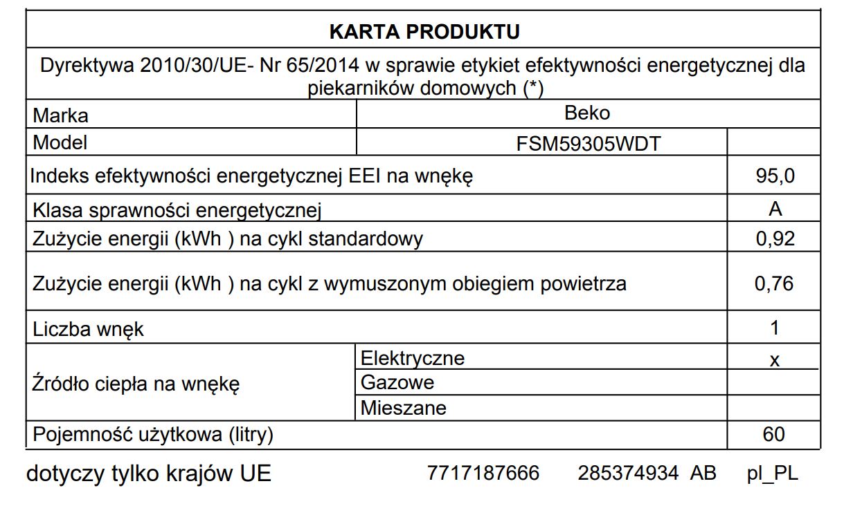 Zakres od A+++ do D Karta produktu Plik w formacie PDF(otworzy się w nowym oknie)
