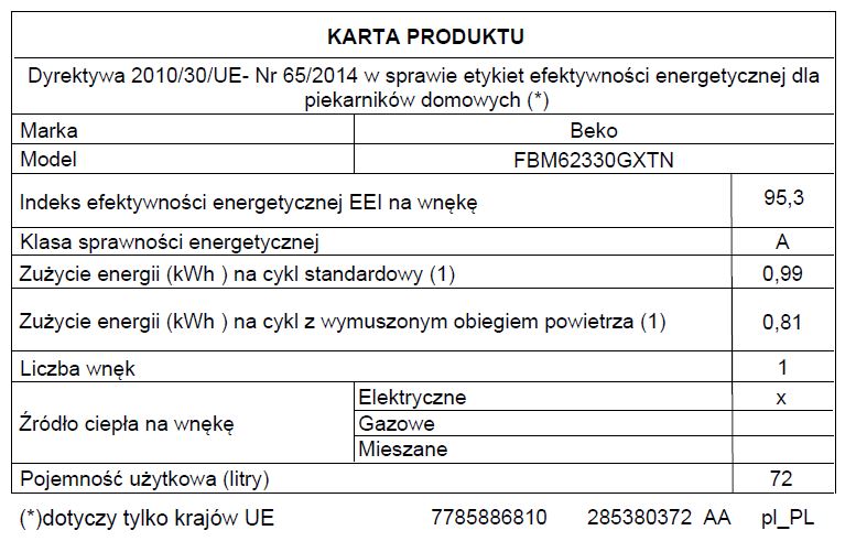 Pojemność piekarnika: 72 l