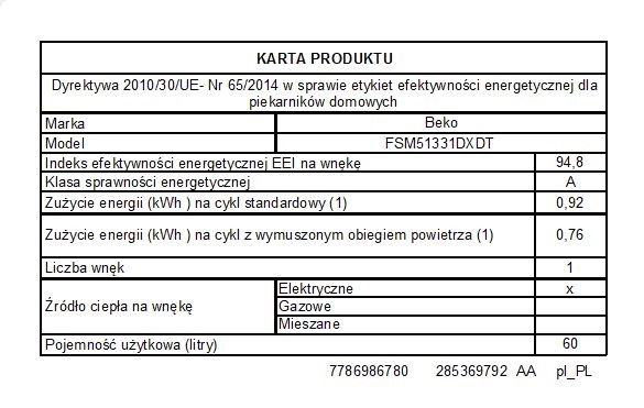 Pojemność piekarnika: 60 l
