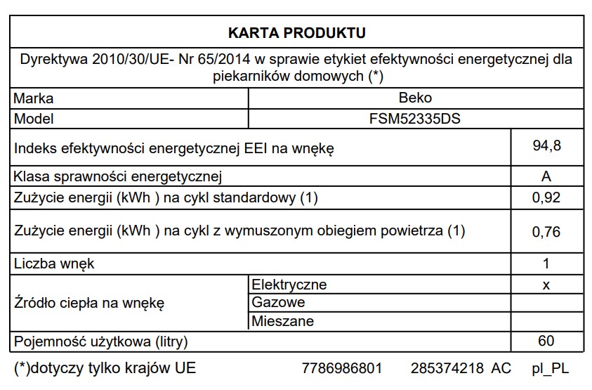 Gotuj tak, jak lubisz – wybierz kuchnię wolnostojącą Beko<p>Płyta gazowa</p><p>50 cm szerokości</p><p>Klasa energetyczna</p> FSM52335DSKuchnia wolnostojąca z technologią Pieczenie 3D Aktywacja wszystkich grzałek i wentylatora Skuteczne i równomierne pieczenie Pieczenie 3D to aktywacja wszystkich grzałek i wentylatora, by cała Twoja potrawa była ogrzewana równomiernie z każdej strony. Dzięki połączeniu tej funkcji z technologią Beko AeroPerfect, będzie ona jeszcze bardziej efektywna niż dotychczas! Szybkie i łatwe potrawy z grilla – niezależnie od pogody Pieczenie z użyciem mniejszej ilości tłuszczu Ta funkcja jest perfekcyjna do grillowania mięsa, kiełbasek, tostów czy ryb. Dzięki wykorzystaniu wysokiej temperatury i zaawansowanej funkcji grillowania, mięso i ryby zachowują pełną wartość odżywczą, nie tracąc wilgoci. Nasz grill zapewnia idealne połączenie chrupiącej skórki na zewnątrz i soczystego wnętrza potrawy, gwarantując niezapomniane doznania smakowe. Nowoczesny panel sterowaniaWybieraj programy i ustawiaj parametry łatwo i wygodnie z intuicyjnym panelem. Korzystaj z pokrętła, aby wybrać czas pieczenia i precyzyjną temperaturę oraz zatwierdzać wybrane funkcje. Pozostałe technologieCzyszczenie parowe Simple SteamFunkcja czyszczenia parowego w piekarnikach Beko wymaga jedynie niewielkiej ilości wody, a potem przetarcia suchą ściereczką, aby jego wnętrze zawsze wyglądało jak nowe... i to wszystko prawie bez Twojego wysiłku! TermoobiegKażda część piekarnika osiągnie jednakową temperaturę. Piekarnik nagrzewa się szybciej i równomiernie dystrybuuje ciepło, co zapewnia doskonałe wypieki i idealnie przygotowane potrawy. Oświetlenie wnętrzaChcesz sprawdzić, jak przebiega gotowanie, ale nie chcesz otwierać drzwi i tracić ciepła? Oświetlenie halogenowe pozwala zobaczyć całe wnętrze piekarnika, dzięki czemu możesz kontrolować swoje potrawy bez otwierania drzwi piekarnika. RozmrażanieWykorzystaj szybką i wygodną funkcję rozmrażania, która opiera się na równomiernym rozprowadzaniu ciepłego powietrza wewnątrz piekarnika, bez nadmiernego podgrzewania żywności. Łatwo wyjmowana szyba drzwiSzyba drzwi piekarnika pozostanie czysta, niezależnie od tego, ile masz czasu na jej umycie. Funkcja łatwego wyjmowania pozwala zaoszczędzić czas i umożliwia dotarcie do trudno dostępnych miejsc. Płyta gazowaPłyta zapewnia wygodę podczas gotowania dzięki wielu praktycznym rozwiązaniom jak zapalarka w pokrętle czy łatwe czyszczenie.<p>Bezpieczne odcięcie gazu</p><p>Wydajne palniki gazowe</p><p>Zapalarka w pokrętle</p><p>Łatwe czyszczenie</p><p>Wykonanie płyty: METAL</p><p>Żeliwne ruszty</p> Akcesoria, które otrzymasz w zestawie Standardowa tacaUniwersalna taca do pieczenia doskonale sprawdzi się do przygotowania różnorodnych dań, takich jak warzywa, ryby czy mięso. Można na niej również wypiekać idealne ciasteczka czy pieczywo.Taca drucianaMa bardzo wiele zastosowań w piekarniku – można na niej podgrzewać jedzenie lub piec większe kawałki bez ryzyka przypalenia spodu.Zrównoważony rozwój w drodze do innowacjiJako specjaliści w sektorze AGD przez ostatnie dwie dekady kładziemy szczególny nacisk na rozwój zrównoważonych technologii w swoich produktach. Ograniczamy emisję CO₂ w codziennych działaniach, wykorzystujemy surowce wtórne w produkcji oraz wdrażamy technologie, pozwalające użytkownikom naszych sprzętów oszczędzać energię każdego dnia.
