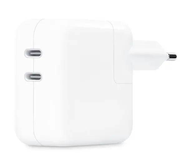 <h2>Apple 2x USB-C 35W Biały</h2>Ładowarka sieciowa Apple 2x USB-C (Universal Serial Bus Type C) to kompaktowe i wydajne rozwiązanie, które umożliwia jednoczesne ładowanie dwóch urządzeń. Dzięki mocy 35W zapewnia szybkie i bezpieczne zasilanie iPhone’a, iPada czy MacBooka Air.Dwa porty USB-C pozwalają na ładowanie dwóch urządzeń w tym samym czasieMoc 35 W – szybkie i efektywne zasilanieKompatybilność z urządzeniami Apple, takimi jak iPhone, iPad czy MacBook AirPoznaj ładowarkę sieciową Apple 2x USB-C Ładowanie dwóch urządzeńŁadowarka sieciowa Apple 2x USB-C została wyposażona w dwa porty USB-C, dzięki czemu pozwala na jednoczesne ładowanie dwóch urządzeń. To praktyczne rozwiązanie dla osób korzystających z kilku sprzętów Apple jednocześnie – na przykład iPhone’a i Apple Watcha – bez potrzeby używania dwóch osobnych ładowarek. W codziennym użytkowaniu to oszczędność czasu i większa wygoda. Wydajność o mocy 35 WZasilacz o mocy 35 W zapewnia szybkie i stabilne ładowanie kompatybilnych urządzeń. Dzięki odpowiedniemu rozłożeniu mocy pomiędzy dwoma portami USB-C, ładowarka pozwala na efektywne zasilanie nawet bardziej wymagających sprzętów, takich jak iPad czy MacBook Air, bez spowalniania procesu. To optymalne rozwiązanie dla użytkowników oczekujących niezawodności. Zalecenia od AppleApple rekomenduje używanie tej ładowarki z urządzeniami takimi jak MacBook Air, iPad, iPhone, Apple Watch, AirPods oraz Vision Pro. Dzięki szerokiej kompatybilności użytkownik ma pewność, że jego sprzęt jest ładowany bezpiecznie, zgodnie ze standardami marki i z pełnym wykorzystaniem możliwości zasilacza Apple 2x USB-C.Zawartość opakowania Apple 2x USB-CW opakowaniu ŁadowarkaApple - marka godna zaufaniaJedna z największych marek na świecieUnikalne, najbardziej zaawansowane rozwiązania w zakresie elektroniki użytkowejLogo symbolem najwyższej jakościNadgryzione jabłko – jeden z najbardziej rozpoznawalnych znaków na świecieWiele lat doświadczenia, bogata historiaAmerykańska marka wprowadzona na rynek w 1976 roku, twórca wielu innowacji