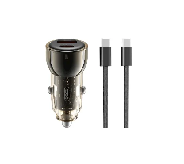 Ładowarka samochodowa XO CC60 USB-A USB-C 60W Czarny + Kabel USB-C do USB-C