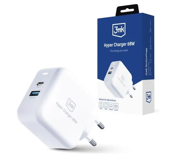 <h2>Hyper Charger 68W</h2><p>Siła Współczesnej Technologii Hyper Charger 68W to prawdziwa rewolucja w świecie ładowarek, łącząca w sobie innowacyjność, energooszczędność i bezpieczeństwo. Wyposażona w dwie bramy: USB-A i USB-C, umożliwia jednoczesne ładowanie dwóch urządzeń z niezwykłą mocą 68W. Technologia GaN to gwarancja, że każde ładowanie jest ultra wydajne i oszczędne. Stworzona z materiału odpornego na działanie wysokiej temperatury, perfekcyjnie rozprowadza ciepło, ochronę podłączonych sprzętów w czasie ekspresowego ładowania.</p><h3>Podwójne Porty USB: Twoje Urządzenia Zawsze Gotowe do Działania</h3><p>Hyper Charger 68W to rozwiązanie dla Ciebie, jeśli posiadasz więcej niż jeden telefon lub chcesz podzielić się ładowarką z rodziną. W biurze też sprawdzi się znakomicie. Dzięki naszej ładowarce baterie są zawsze pełne, pozwala na nieskończoną rozmowę i korzystanie z aplikacji. Szukasz maksimum wygody? Wybierz Hyper Charger 68W z dwoma portami USB!</p><h3>Nasycona Innowacjami Technologicznymi</h3><p>Hyper Charger 68W posiada innowacyjny tranzystor oparty na półprzewodniku GaN, dzięki któremu ładowanie jest niesamowicie wydajne i energooszczędne, mimo małych wymiarów ładowarki. Porty USB-A i USB-C gwarantują kompatybilność z wieloma modelami telefonów i innych urządzeń. Mała, lekka i kompaktowa - Hyper Charger 68W jest tak poręczna, że możesz mieć ją zawsze pod ręką!</p><h3>Ekspresowe Ładowanie</h3><p>Hyper Charger 68W odnawia energię Twoich urządzeń kilka razy szybciej niż większość ładowarek na rynku. Nowoczesne technologie umożliwiają jej błyskawiczne ładowanie. Bez zniecierpliwienia czekania na zakończenie ładowania jednego urządzenia, aby podłączyć kolejne. Porty USB-A i USB-C pozwalają na podłączenie dwóch urządzeń jednocześnie!</p><h2>Bezpieczeństwo i Nowoczesny Design</h2><p>Wytrzymały i odporny na wysoką temperaturę materiał, z którego wykonana jest Hyper Charger 68W, zapewnia doskonałe rozprowadzanie ciepła. Dzięki temu, ładowarka doskonale chroni podłączone urządzenia podczas szybkiego ładowania. Hyper Charger 68W to ładowarka o futurystycznym wyglądzie i praktycznej formie - elegancka, minimalistyczna i pasująca do wszystkiego. Pożegnaj wielkie i ciężkie ładowarki sieciowe - Hyper Charger 68W ma ich parametry, ale pasuje do wszystkiego!</p>
