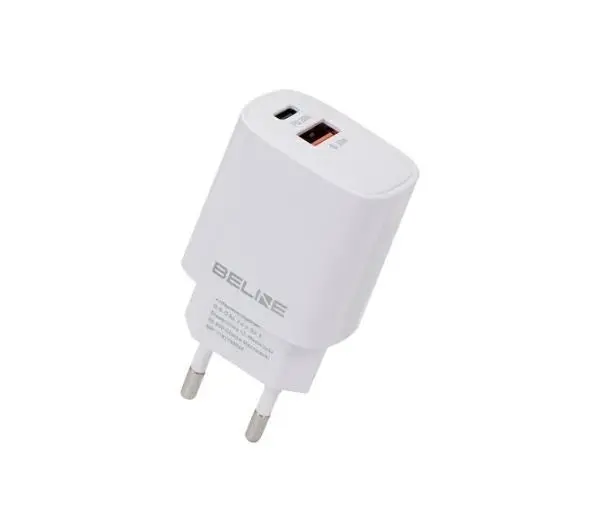 Ładowarka sieciowa Beline 1x USB-C + 1x USB 30W PD 3.0 + QC 3.0 GaN Biały