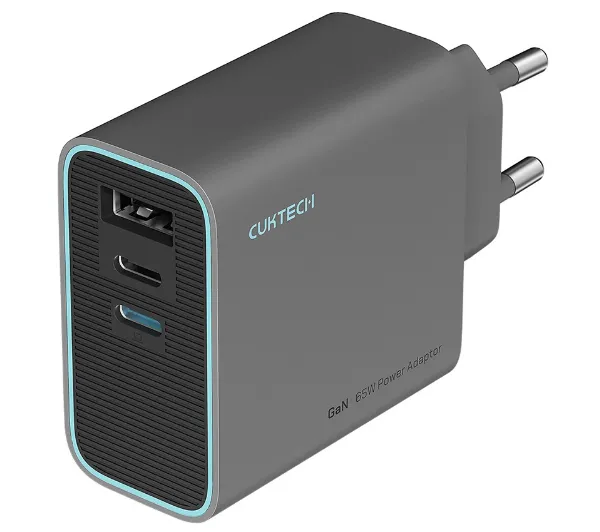 Ładowarka sieciowa Cuktech CUKAD653EUGR GaN USB-A 2x USB-C 65W Szary