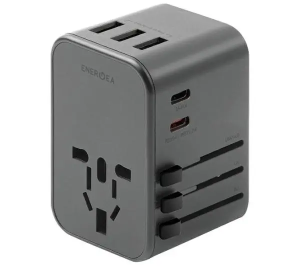 Ładowarka sieciowa Energea 3xUSB+2xUSB-C PD-PPS-QC 3.0 35.5W 3A2C 4w1 US/UA/EU/UK Travelworld Szary