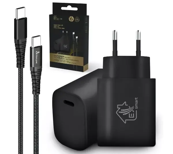 <h2>Unikalne rozwiązanie dla ekspresowego ładowania</h2><p>Wprowadź się w wyjątkowe funkcje pakietu Extralink Smart Life Cable + Charger, stworzonego do błyskawicznego ładowania oraz synchronizacji danych Twoich nowoczesnych gadżetów mobilnych.</p><h2>Kabel do przesyłania danych USB Type-C do USB Type-C o długości 200 cm</h2><p>Dzięki temu kablowi USB Type-C do Type-C o długości 200 cm możliwe jest szybkie ładowanie i stabilny transfer danych. To idealne rozwiązanie dla współczesnych smartfonów, tabletów i laptopów, które posiadają port USB-C.</p><h2>Ładowarka 18W z technologią PD3.0 i Quick Charger</h2><p>Szybkie i inteligentne ładowanie - ładowarka 18W wyposażona jest w technologię PD3.0 (Power Delivery 3.0) oraz Quick Charger, co zapewnia szybkie i bezpieczne ładowanie, dostosowane do potrzeb Twoich urządzeń.</p><h2>Praktyczne zastosowanie</h2><p>Idealny do użytku domowego i mobilnego - Extralink Smart Life Cable + Charger Set02 to niezbędny zestaw dla osób ceniących sobie szybkość ładowania, niezawodność i elegancki design. Idealny do codziennego użytku oraz podróży służbowych.</p><h2>Specyfikacja</h2><ul> <li> Typ wejścia ładowarki: : USB-C </li> <li> Typ wejścia kabla: : USB-C </li> <li> Typ wyjścia kabla: : USB-C </li> <li> Całkowita moc wyjściowa kabla: : 60W </li> <li> Całkowita moc ładowarki: : 18W </li> <li> Technologia:: PD3.0, Quick Charger </li></ul>