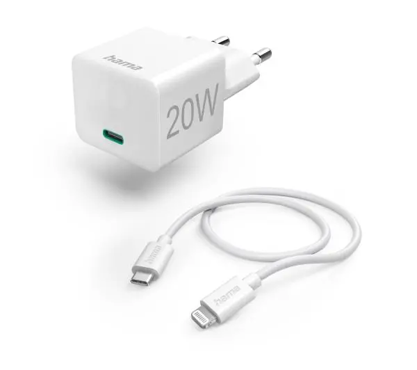 <h2>HAMA ŁADOWARKA SIECIOWA MINI PD/Qualcomm® 20W, + Typ-C - Lightning, BIAŁA</h2><p>Szukasz ładowarki, która będzie bardzo wydajna i pozwoli ładować telefon z ogromną prędkością? Zdecyduj się na ten produkt, w trosce o stan Twoich urządzeń.</p><h2>Dostosowany do Twojego urządzenia</h2><p>Ładowarkę z mocą wyjściową 20 W kupisz w zestawie z kablem USB-C do Lightning. Kompaktowy kształt umożliwi dopasowanie się do różnego rodzaju gniazdek, nawet w wymagającej przestrzeni. Całość jest odporna na uszkodzenia mechaniczne. Możesz korzystać z produkt na całym świecie, dzięki złączu sieciowemu 100-240 V.</p><h2>Postaw na szybkie dostarczanie energii</h2><p>Czy możliwe jest naładowanie 60% baterii w 30 minut? Z tą ładowarką tak, ponieważ obsługuje ona technologię szybkiego dostarczania energii Power Delivery. Cały proces będzie optymalny, a urządzenia optymalnie naładowane. Masz gwarancję ochrony akumulatora, ponieważ całość jest zabezpieczona przed zwarciem i przeładowaniem.</p><h2>Specyfikacja</h2><h2>Dane techniczne</h2><ul> <li>Kolor: biały</li> <li>Długość kabla: 1 m</li> <li>Max moc wyjściowa: 20 W</li> <li>Obsługa technologii szybkiego ładowania PowerDelivery</li> <li>Kabel USB-C do Lightning</li> <li>Gwarancja: 2 lata</li></ul><h2>Korzyści dla Ciebie</h2><ul> <li>Szybkie ładowanie urządzeń</li> <li>Kompaktowy kształt</li> <li>Ochrona akumulatora</li></ul><h2>Dlaczego Hama?</h2><p>Jesteśmy niemieckim producentem i dystrybutorem akcesoriów oraz sprzętu elektronicznego. Działamy w wielu obszarach, śledzimy trendy technologiczne i już od niemal 100 lat tworzymy rozwiązania, które sprawiają, że codzienne życie jest po prostu łatwiejsze.</p><p>Artykuły Hama to niezawodne i certyfikowane produkty, które poddawane są restrykcyjnym testom przez nasz wewnętrzny dział zapewnienia jakości QC. Posiadają wszystkie wymagane prawem certyfikaty, dopuszczające je do handlu w Polsce, m.in. CE i TÜV. W konsekwencji wszystkie nasze produkty są w pełni bezpieczne dla swoich użytkowników.</p><p>Myślisz poważnie o akcesoriach, pomyśl o produktach Hama. Bez względu na to, jakie urządzenie posiadasz, z pewnością mamy do niego funkcjonalne uzupełnienie.</p>