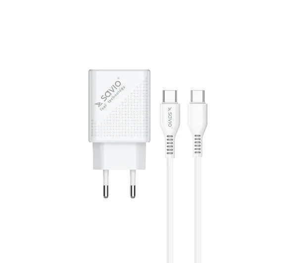 <p>Ładowarka sieciowa USB Quick Charge Power Delivery 3.0 18W SAVIO LA-05Ładowarka sieciowa SAVIO LA-05 jest kompatybilna z technologią Quick Charge oraz Power Delivery w wersjach 3.0, 2.0 i 1.0, co umożliwia ładowanie obsługiwanych urządzeń nawet 4 razy szybciej. Jeśli urządzenie, które jest ładowane, nie obsługuje technologii szybkiego ładowania, ładowarka automatycznie dostosuje maksymalną bezpieczną prędkość ładowania. Aby w pełni skorzystać z możliwości ładowarki, należy użyć kabla USB, który obsługuje technologię Quick Charge i Power Delivery.</p><p>Specyfikacja techniczna:Posiadane porty: 1 x USB-A, 1 x PD Zakres napięcia wejściowego: 100-240V~, 50-60Hz, 0.6A Napięcie wyjściowe dla portu USB-A (Quick Charge 3.0): 5V/3A, 9V/2A, 12V/1.5A Napięcie wyjściowe dla portu Power Delivery 3.0: 5V/3A, 9V/2A, 12V/1.5A Całkowita moc wyjściowa dla portu USB-A + PD: maks. 18W (5V/3.6A) Kompatybilna ze standardem: Quick Charge 3.0 oraz Power Delivery 3.0 Wymiary: 86mm x 42mm x 25mm Kompatybilność ze wszystkimi smartfonami, tabletami itp. Zabezpieczenie: – przeciążeniowe i przeciwzwarciowe.</p><p>Zawartość zestawu:kabel USB Typ C – Typ C 1m ładowarka sieciowa instrukcja obsługi</p>