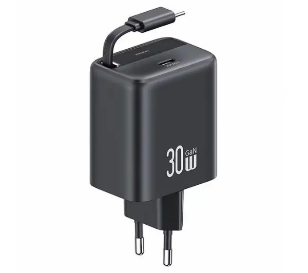 Ładowarka sieciowa USAMS 1xUSB-C Retractable PD+QC 30W Gan Fast Charging Czarny