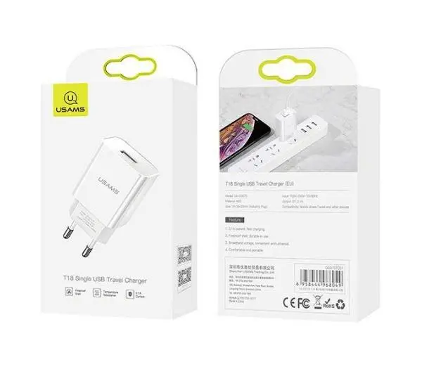 <h3>USAMS T18</h3><p>USAMS T18 to zaawansowana ładowarka sieciowa z wejściem USB (PD), która oferuje szybkie i wydajne ładowanie w kompaktowej formie. Inteligentna adaptacja prądu zapewnia szybkie i efektywne ładowanie, dostosowane do potrzeb konkretnego urządzenia. Dzięki szybkiemu ładowaniu 2.1A użytkownik może naładować swoje urządzenia w krótkim czasie, co jest istotne w codziennym użytkowaniu.</p><h3>CECHY PRODUKTU:</h3><p>- Inteligentna adaptacja prądu, szybkie ładowanie- Mocna konstrukcja z ABS, odporna na uszkodzenia- Szybkie ładowanie 2.1A- Bezpieczna i stabilna. Wbudowany inteligentny układ, automatycznie filtruje niebezpieczne napięcie i prąd, chroni akumulator- Materiał: ABS- Całkowita moc wyjściowa: 5 V - 2,1 A.</p>