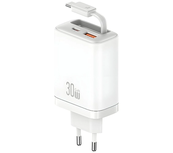 Ładowarka sieciowa USAMS Xiang Series CC296 30W 1x USB-C 1x USB-A + kabel USB-C Biały