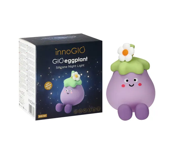 <h2>Silikonowa lampka nocna dla dzieci GIOeggplant GIO-147</h2><p>Ta silikonowa lampka w kształcie bakłażana z białym kwiatkiem łączy praktyczność z nowoczesnym stylem. Miękka konstrukcja i delikatne światło tworzą przytulną atmosferę, idealną do pokoju dziecka lub do relaksu w sypialni.</p><h3>Przytulne i bezpieczne światło</h3><p>Lampka oferuje trzy poziomy jasności światła, zmieniane delikatnym dotykiem.</p><p>Dzięki funkcji automatycznego wyłączenia po 30 minutach możesz zasypiać spokojnie, bez konieczności pamiętania o jej wyłączeniu.</p><h3>Łatwa obsługa i intuicyjne sterowanie</h3><p>Zmiana trybu jasności świecenia odbywa się jednym dotknięciem, co czyni obsługę wyjątkowo prostą. Nawet najmłodsi użytkownicy poradzą sobie z jej włączaniem i przełączaniem światła.</p><h3>Mobilność i długi czas pracy</h3><p>Dzięki wbudowanemu akumulatorowi lampka działa przez wiele godzin bez konieczności ładowania. Możesz ją zabrać ze sobą w podróż, na kemping czy postawić w dowolnym miejscu domu.</p><h3>Nowoczesny design i miękki silikon</h3><p>Miękka, silikonowa obudowa sprawia, że lampka jest bezpieczna w użytkowaniu i przyjemna w dotyku. Jej „nóżki” mogą dodatkowo pełnić funkcję pdostawki pod telefon, co czyni ją jeszcze bardziej praktyczną w codziennym użytkowaniu.</p><h3>Zawartość opakowania</h3><p>Lampka, kabel USB-C (Uniwersalna Magistrala Szeregowa – Typ C), instrukcja</p>