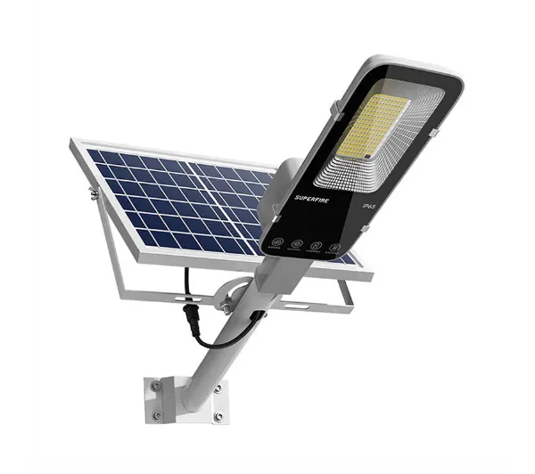 <h2>Lampa solarna SUPERFIRE FF5-C 263W 1200lm 15000mAh</h2><p>Lampa solarna Superfire to nowoczesne źródło światła zasilane energią słoneczną, które sprawdzi się w przestrzeniach ulicznych, przemysłowych oraz komercyjnych. W zestawie znajduje się pilot umożliwiający wygodne sterowanie jej pracą. Konstrukcja została wykonana z trwałych materiałów odpornych na uszkodzenia, a zastosowanie technologii PWM (Pulse Width Modulation, modulacja szerokości impulsu – metoda regulacji mocy i napięcia) zapewnia stabilne działanie nawet w niskich temperaturach. To rozwiązanie łączy wydajność, oszczędność energii i komfort użytkowania.</p><h2>Automatyczne działanie dla większej wygody</h2><p>Urządzenie działa w pełni samodzielnie – po zapadnięciu zmroku uruchamia się automatycznie, zapewniając odpowiednie oświetlenie otoczenia i zwiększając bezpieczeństwo. O świcie wyłącza się bez potrzeby ingerencji użytkownika, co czyni je wyjątkowo wygodnym i bezobsługowym rozwiązaniem do codziennego użytku.</p><h2>Ekologiczne zasilanie i oszczędność energii</h2><p>Lampa została wyposażona w wydajne panele słoneczne wykonane z polisilikonu, które skutecznie pozyskują energię ze słońca. Dzięki temu ogranicza zużycie prądu z sieci, wspierając ochronę środowiska oraz pozwalając realnie obniżyć rachunki za energię elektryczną.</p><h2>Wygodne sterowanie pilotem</h2><p>Dołączony pilot na podczerwień umożliwia dostosowanie czasu pracy lampy do indywidualnych potrzeb. Możesz ustawić działanie na 3, 5 lub 8 godzin, po czym urządzenie automatycznie się wyłączy, co dodatkowo sprzyja oszczędzaniu energii i zwiększa kontrolę nad oświetleniem.</p><h2>Wydajny akumulator i trwałe oświetlenie</h2><p>Model został wyposażony w akumulator o napięciu 6V, który zapewnia stabilną pracę oraz długi czas świecenia po pełnym naładowaniu. Wysoka pojemność baterii przekłada się na niezawodność działania, a zastosowany chip LED (Light Emitting Diode, dioda elektroluminescencyjna) zwiększa efektywność świetlną oraz żywotność całego systemu.</p><h2>Odporność na warunki atmosferyczne</h2><p>Lampa charakteryzuje się klasą szczelności IP65 (Ingress Protection 65, stopień ochrony przed pyłem i wodą – całkowita ochrona przed pyłem i ochrona przed strumieniem wody), co oznacza skuteczną ochronę przed wodą i pyłem. Dzięki temu może pracować w trudnych warunkach pogodowych bez ryzyka uszkodzeń. Dodatkowo wykorzystanie hartowanego szkła o wysokiej przejrzystości zapewnia naturalne, jasne światło oraz zwiększa wytrzymałość konstrukcji.</p>