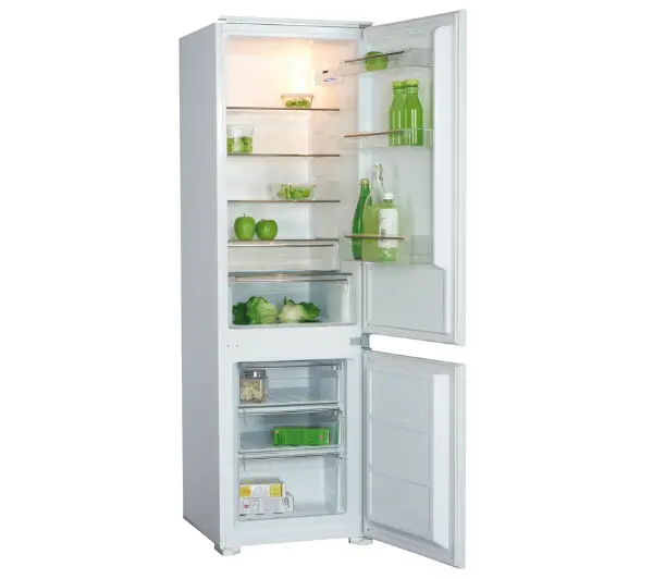 Wyposażenie: 5 półek szklanych, 3 półki w drzwiach, pojemnik na jajka, 1 szuflada na warzywa i owoce