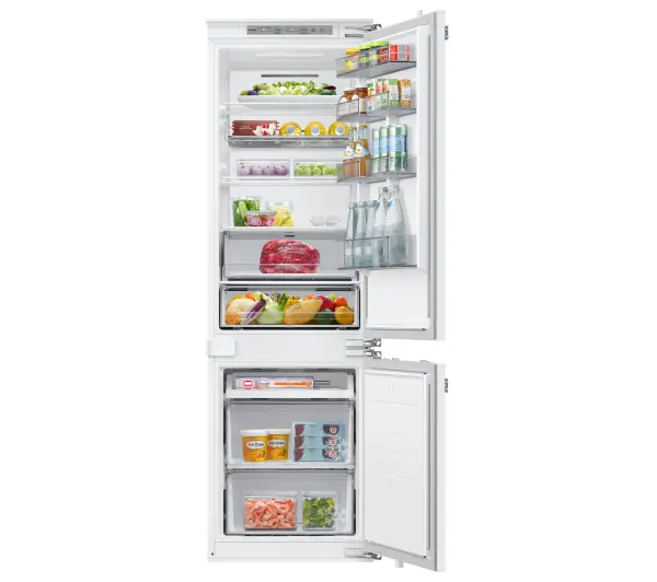 <p>rozwiń opis i zobacz więcej</p><p>All-Around Cooling</p><p>Odpowiednie warunki na każdej półce w lodówce.</p><p>No Frost</p><p>Urządzenie nie wymaga już rozmrażania.</p><p>Tryb AI Energy</p><p>Dzięki aplikacji możesz oszczędzać energię.</p><p>Zwiększona pojemność i komfort użytkowania - lodówka do zabudowy BRB70F26CEF0EO </p> Your browser does not support HTML5 video. <p>Tryb AI Energy</p><p>Inteligentne zarządzanie energią</p><p>Korzystaj z aplikacji i oszczędzaj nawet 10% energii</p><p>Przyszłość należy do inteligentnych rozwiązań. Lodówka Samsung BRB70F26CEF0EO z modułem AI Energy to krok w stronę bardziej energooszczędnego domu. Wykorzystaj potencjał aplikacji SmartThings¹ i oszczędzaj do 10% energii².</p> Your browser does not support HTML5 video. <p>Monitoruj zużycie energii</p><p>Zyskaj pełną kontrolę nad zużyciem energii. Wybierz okres: dzień, tydzień, miesiąc i sprawdź wyniki.</p><p>Sprawdzaj zużycie prądu innych urządzeń</p><p>Nasza aplikacja umożliwia łatwe monitorowanie zużycia prądu przez urządzenia w domu, bezpośrednio z Twojego smartfona³.</p><p>Ustaw miesięczny cel</p><p>Wystarczy ustawić cel, a aplikacja zoptymalizuje działanie urządzenia, aby go osiągnąć.</p><p>Energooszczędne rozwiązania</p><p>Alarm otwartych drzwi</p><p>Twoja lodówka pamięta o konieczności zamykania drzwi, by nie marnować energii. Gdy będzie otwarta ponad 2 minuty, przypomni Ci o tym sygnałem dźwiękowym. </p><p>Funkcja Wakacje</p><p>Wyjeżdżasz na dłużej? Pomyśl o funkcji Wakacje! Zamrażarka działa bez zmian, a w chłodziarce temperatura wzrośnie do ok. +17°C, oszczędzając prąd. </p><p>Oświetlenie LED</p><p>Praktyczne oświetlenie LED o naturalnej barwie sprawia, że całe wnętrze chłodziarki jest doskonale widoczne.</p><p>Kontroluj swoje urządzenia</p><p>Oblicz szacunkowe koszty energii zużywanej przez urządzenia zarządzane przez SmartThings.</p><p>Zobacz, ile zyskujesz</p><p>Sprawdź, w którym dniu, tygodniu lub miesiącu zużywasz więcej prądu i dowiedz się, jak oszczędzać.</p><p>*Obrazy wygenerowane komputerowo mające na celu wizualizacje działania aplikacji. Aplikacja posiada polską wersje językową.</p><p>Dłuższa świeżość żywności</p><p>All-Around Cooling</p><p>Równomierne chłodzenie w każdym zakamarku lodówki</p><p>Chłodne powietrze otacza każdy produkt w lodówce dzięki systemowi All-Around Cooling, wpuszczającego zimno przez otwory w tylnej ściance. To gwarancja świeżości i dłuższego utrzymania smaku.</p><p>Optimal Fresh+</p><p>Dłużej świeże mięso i ryby</p><p>Optimal Fresh+ to szuflada do przechowywania świeżego mięsa i ryb. Utrzymuje je w niższej temperaturze niż w pozostałej części chłodziarki, aby zapewnić im utrzymanie smaku i aromatu na dłużej.</p><p>Fresh Box</p><p>Wygodna organizacja</p><p>Przechowuj owoce i warzywa w chłodziarce, w dolnej szufladzie. Wyższa wilgotność w tej strefie pomoże zachować ich świeżość. Dodatkowo, masz tam sporo miejsca na butelki.</p><p>No Frost</p><p>Lodówka bez szronu i lodu</p><p>Lodówka z technologią No Frost utrzymuje chłodne powietrze w ciągłym ruchu, eliminując z wnętrza szron i lód. To idealne rozwiązanie, gdyż urządzenie nie wymaga już rozmrażania.</p><p>Power Freeze</p><p>Szybkie mrożenie na żądanie</p><p>Funkcja Power Freeze sprawia, że zamrażarka osiąga minimalną temperaturę, zapewniając szybkie i skuteczne zamrażanie nawet dużej ilości żywności oraz robienie kostek lodu.</p><p>Dodatkowe udogodnienia</p> <p>Technologia SpaceMax™</p><p>Więcej miejsca wewnątrz – takie same wymiary zewnętrzne</p><p>Pożegnaj się z przepełnioną lodówką! Model o pojemności 267 litrów i głębokości 550 mm oferuje więcej miejsca na wszystko, czego potrzebujesz. Technologia SpaceMax™ sprawia, że lodówka jest zarówno pojemna, jak i posiada standardowe wymiary zewnętrzne. To przez cieńsze ścianki i bardziej wydajną izolację.</p><p>Gentle Lighting</p><p>Zapobiega oślepianiu przez światło wewnętrzne</p><p>Funkcja Gentle Lighting w aplikacji SmartThings¹ umożliwia dostosowanie jasności w chłodziarce. Tryb Przyciemniania zapewnia płynne przejścia oświetlenia, a Tryb Nocny automatycznie dopasowuje oświetlenie do dnia lub nocy.</p><p>Regulowane balkoniki drzwiowe</p><p>Dodatkowe miejsce na produkty</p><p>6 balkoników w drzwiach lodówki to funkcjonalność ułatwiająca utrzymanie porządku w chłodziarce. Możesz dowolnie aranżować przestrzeń, umieszczając tu ulubione przetwory i nawet duże butelki. Więcej miejsca zostanie w komorze głównej.</p><p>Wielofunkcyjna półka na wino</p><p>Nawet duże butelki znajdą swoje miejsce</p><p>Dzięki ulepszonej konstrukcji z niemal płaskim spodem z łatwością przechowasz nawet duże butelki oraz dodatkowe produkty w opakowaniach.</p><p>Cicha praca</p><p>Mniej hałasu w Twoim domu</p><p> Lodówka do zabudowy BRB70F26CEF0EO doskonale wpasuje się w każdą kuchnię, nawet połączoną z salonem, nie zakłócając relaksu domowników. Zapewnia to wyjątkowo cichy tryb pracy (zaledwie 35 dB).</p> <p>Niezawodne działanie</p><p>Udoskonalony kompresor Digital Inverter</p><p>Cicha praca i mniejsze zużycie energii</p><p>Innowacyjna technologia Digital Inverter sprawia, że lodówka pracuje inteligentnie i energooszczędnie. Kompresor automatycznie dostosowuje swoją pracę do zapotrzebowania w danym momencie, zapewniając optymalne warunki przechowywania żywności. Dzięki 20-letniej gwarancji Samsung⁴ możesz cieszyć się nowoczesnymi rozwiązaniami przez wiele lat.</p><p>SmartThings ułatwia życie</p><p>Zaoszczędź czas i energię. Dzięki aplikacji SmartThings¹ możesz z łatwością zarządzać swoimi urządzeniami Samsung, automatyzując wiele czynności. Zobacz, jak łatwo możesz optymalizować zużycie energii i cieszyć się większą wygodą.</p> <p>AI Energy</p><p>Zastanawiałeś się, jak zoptymalizo