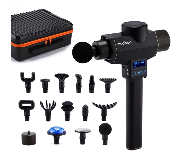 <p>Terapia perkusyjna</p><p>Gun Bandit to perfekcyjne połączenie technologii z solidnym wykonaniem. Jego metalowa, wytrzymała konstrukcja i niezwykle mocny silnik zapewniają nieporównywalną skuteczność masażu. Urządzenie wykorzystuje terapię perkusyjną, opierającą się na pulsujących wibracjach o dużej sile i częstotliwości, dzięki czemu pomaga rozluźnić napięte mięśnie, łagodzi ból, zwiększa krążenie krwi i przyspiesza regenerację. Metoda t¬a jest niezwykle skuteczna zarówno w dziedzinie sportu, rehabilitacji, jak i w codziennym odprężeniu. Jest to rozwiązanie, które pozwala szybko i skutecznie złagodzić ból mięśni, poprawić elastyczność i przywrócić im pełen zakres ruchu.</p><p>Bezkonkurencyja amplituda 16mm</p><p>Bandit to kompaktowe urządzenie bezprzewodowe, oferujące użytkownikom niezrównane korzyści zarówno w dziedzinie fizjoterapii, jak i relaksu. Jest idealne dla osób profesjonalnie uprawiających sport czy dla ekspertów z branży rehabilitacji, ze względu na wyjątkową amplitudę (16mm skok głowicy), znacznie większą niż tradycyjne masażery, co oznacza głębszy i bardziej efektywny masaż. Dzięki temu Gun Bandit skutecznie rozluźnia spięte mięśnie, redukuje napięcia, a także wspomaga rehabilitację po urazach i wypadkach.</p><p>Największy dostępny w sprzedaży komplet głowic</p><p>W zestawie z Gun Bandit znajdziesz 14 różnorodnych głowic, w tym specjalną głowicę chłodzącą i rozgrzewającą. To kompleksowe rozwiązanie, które pozwala dostosować masaż do indywidualnych potrzeb i preferencji. Dodatkowo, masażer zapakowany jest w walizkę, która ułatwia przechowywanie i podróżowanie z urządzeniem.</p><p>Głowica chłodząca</p><p>Głowica chłodząca w Gun Bandit łagodzi obrzęki, redukuje stany zapalne oraz zmniejsza bóle mięśni i stawów. Funkcja jest szczególnie pomocna w przypadku urazów, nadmiernego wysiłku fizycznego czy w przewlekłych problemach związanych z układem ruchu. Chłodząca końcówka działa jak naturalny środek przeciwbólowy i przynosi ulgę w różnych dolegliwościach.</p><p>Głowica rozgrzewająca</p><p>Głowica rozgrzewająca rozluźniania spięte mięśnie, zwiększa elastyczność tkanek oraz stymuluje krążenie krwi. Dzięki temu, poprawia się elastyczność i zakres ruchu ciała, co może być szczególnie korzystne dla osób borykających się z napięciem mięśniowym czy problemami z krążeniem.</p><p>Dodatkowy obciążnik do masowania</p><p>Gun Bandit, posiada dodatkowy obciążnik, zapewniający głęboki, intensywny i precyzyjny masaż, który dociera do głębokich warstw tkanek mięśniowych, pozwalając skupić się na konkretnych obszarach ciała, gdzie masaż może przynieść największe korzyści, a także ułatwia precyzyjne dostosowanie nacisku do indywidualnych potrzeb użytkownika. To właśnie w tych głębszych warstwach możemy często odczuwać napięcie, sztywność czy ból mięśni wymagających rozluźnienia, złagodzenia dyskomfortu czy relaksu.</p><p>Walory zdrowotne</p><p>Gun Bandit zapewnia wiele korzyści dla zdrowia i urody. Dzięki specjalnym głowicom i precyzyjnym wibracjom, masażer pobudza produkcję kolagenu w skórze, co poprawia jej elastyczność i wygląd, sprawiając, że staje się młodsza i bardziej promienna. Ponadto, terapia perkusyjna rozbija mięśnie po treningu, zmniejsza obrzęki, poprawiając krążenie krwi dostarczając energetyzującego i ożywczego masażu. To także doskonałe wsparcie w rzeźbieniu mięśni, odchudzaniu czy rehabilitacji po urazach i wypadkach, umożliwiając precyzyjne docieranie do problematycznych obszarów ciała.</p><p>Wytrzymałość polecana przez profesjonalistów</p><p>Jego solidna, metalowa konstrukcja zapewnia niezawodność, trwałość i wytrzymałość, co pozwala na długie, wydajne sesje masażu. Wyposażony w pojemną baterię, umożliwiającą korzystanie z masażera bez przerw, co oznacza długotrwałe korzyści dla Twojego ciała i umysłu. To idealne rozwiązanie dla osób aktywnych, sportowców, czy rehabilitantów, którzy chcą cieszyć się profesjonalnym masażem w zaciszu swojego domu. Dzięki Gun Bandit możesz uniknąć długiego oczekiwania na wizyty w gabinetach rehabilitacyjnych, oszczędzając czas i pieniądze.</p>