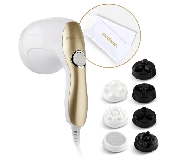 Body masażerModel: ME-800modelująco-wyszczuplającyIntensywne wyszczuplanieWysoka moc masażera i specjalny ruch wibracyjny zapewniają głęboki drenaż wszystkich warstw skóry. Profesjonalny masaż wyszczuplający w zaledwie 10 minut rozbija powierzchniową tkankę tłuszczową. Sesja zabiegów usuwa nawet uporczywe złogi tłuszczu i zauważalnie zmniejsza obwody ciała.Modelowanie sylwetkiInspirowany profesjonalnymi technikami Body masażer Medivon pozwala łatwo uzyskać atrakcyjną sylwetkę. Masaż modelujący pobudza krążenie podskórne nawet do 97%. Idealnie koryguje niedoskonałości figury, także w miejscach opornych na odchudzanie. Dzięki temu każdy, bez względu na wiek, płeć i stopień zaawansowania problemu, uzyskuje wymarzone efekty.Terapia antycellulitowaUnikalne głowice rolkowe i falujące zapewniają głęboki masaż drenujący. Masaż tego typu świetnie usuwa każdy rodzaj cellulitu. Nawet w przypadku dużego nasilenia problemu skutecznie uwalnia ciało od zalegających nierówności. Więcej! Stosowanie głowic do drenażu zapobiega powstawaniu cellulitu w przyszłości.Aksamitnie gładka skóra4 niepowtarzalne techniki masażu stymulującego skórę do odnowy. Masaż ugniatający, rolujący, głaszczący i wibracyjny z wykorzystaniem specjalnych głowic masujących. Kompleksowy masaż intensywnie pielęgnuje, rewitalizuje i wzmacnia witalność skóry. Ma działanie ujędrniające i wygładzające.Relaks dla mięśniBody masażer Medivon to relaks dla mięśni i rozluźnienie ciała. Oferuje zaawansowane techniki masażu, aby dotrzeć do najgłębszych warstw mięśni. Głęboki masaż znakomicie wycisza mięśnie po intensywnym wysiłku fizycznym. Doskonale odpręża, uwalnia od napięć i bólu. To najlepsza naturalna ochrona mięśni po ciężkim dniu, niezależnie od wymiaru Twojej aktywności.8 wymiennych głowicBody masażer Medivon to cała gama możliwości masażu w jednym urządzeniu! W zestawie otrzymujesz 8 unikalnych głowic masujących. Uniwersalne głowice są odpowiednie do wszystkich partii ciała. Dzięki nim wykonasz profesjonalny masaż w domowym zaciszu.Intuicyjna obsługaErgonomiczny kształt, prosta konstrukcja i łatwe sterowanie – bez problemu poradzisz sobie z obsługą urządzenia i swobodnie wymasujesz dowolną partię ciała. Płynna regulacja poziomów intensywności dodatkowo ułatwia korzystanie z urządzenia. Masuj tak, jak potrzebujesz!Wysoka jakość produktuMasażer wykonano z materiałów najwyższej jakości. Jego wagę dostosowano idealnie do potrzeb masażu, tak, aby dokładnie przylegał do skóry. Pracuje bardzo cicho, dzięki czemu możesz stworzyć swój własny, spersonalizowany program wellness. Podsumowując: Body masażer modelująco-wyszczuplający to wyszczuplanie, modelowanie, ulga dla mięśni, relaks dla ciała i piękna, gładka skóra.