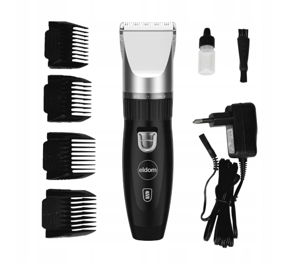 Opis: Głowica tnąca tytanowo - ceramiczna, Zasilanie akumulatorowo-sieciowe, 25 różnych długości strzyżenia, 5-cio stopniowa regulacja ostrza; 0,8; 1,1; 1,4; 1,7; 2,0 mm, 4 nasadki grzebieniowe: 3, 6, 9, 12 mm