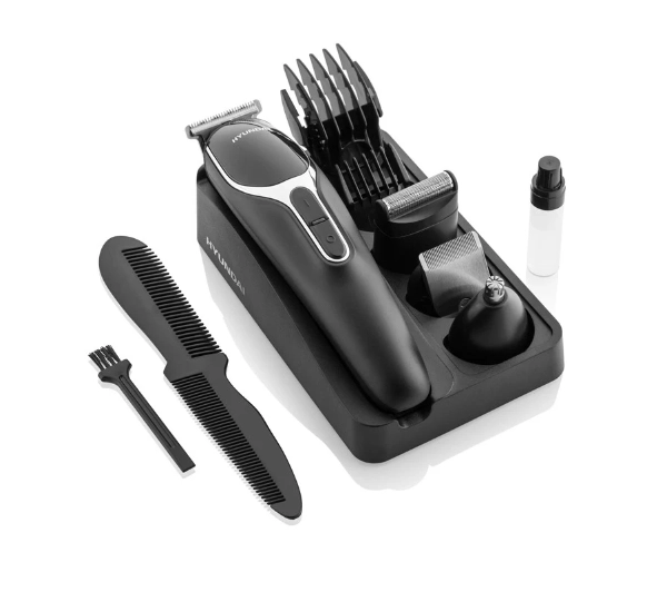 Wyposażenie: 2 nasadki, 2 nasadki grzebieniowe, grzebień, nasadka do golenia, olej do konserwacji, szczoteczka, trymer do nosa i uszu