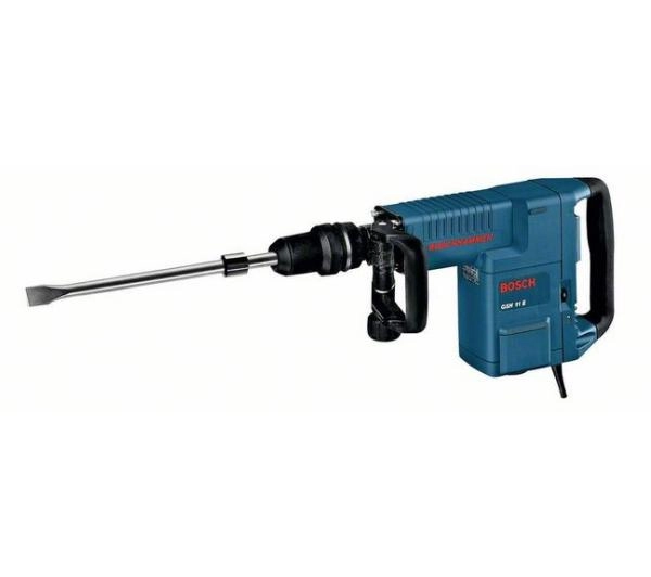 GSH 11 E Professionalspecjalista do kucia i prac wyburzeniowych<ul> <li>Ekstremalna energia udaru 16,8 J zapewnia dużą wydajność pracy</li> <li>Niski poziom drgań w czasie eksploatacji oraz przy włączonym urządzeniu (bez obciążenia)</li> <li>Nieduża siła nacisku zapewnia niemęczącą pracę</li> <li>Szeroki włącznik przesuwny umożliwia wygodne włączane i wyłączanie</li> <li>Możliwość ustawienia dłuta w 12 pozycjach</li> <li>Obrotowa rękojeść dodatkowa z możliwością przestawiania wokół osi urządzenia</li> <li>Uchwyt narzędziowy SDS-max z wbudowaną izolacją przeciwpyłową</li> <li>Pojemna walizka narzędziowa</li> <li>wyświetlacz serwisowy sygnalizuje konieczność wymiany szczotek węglowych</li></ul>Wyposażenie standardowe:<ul> <li>Dłuto płaskie 400 x 25 mm</li> <li>Rękojeść dodatkowa</li> <li>Smar w tubie</li> <li>Sukno maszynowe</li> <li>Walizka narzędziowa</li></ul>