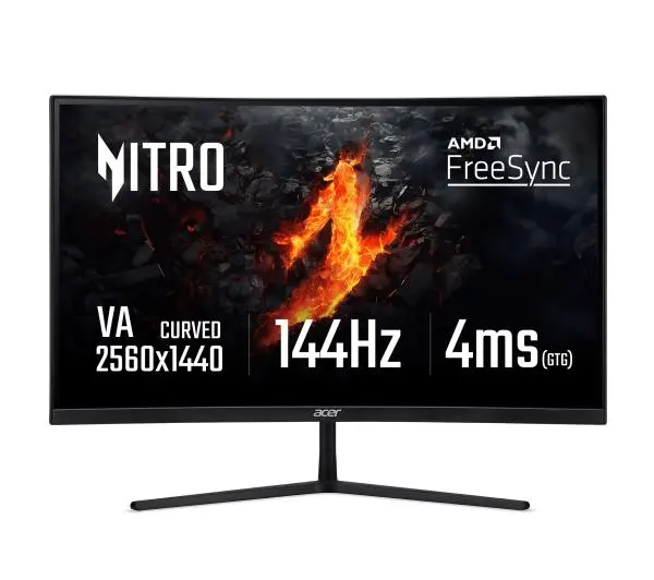 <h3>Jeszcze lepszy</h3><p>Przeglądaj gry jak nigdy dotąd na 27 calowym zakrzywionym wyświetlaczu w technologii VA. Poszerz swoje pole widzenia, aby objąć duże sekwencje akcji i szerokie widoki w rozdzielczości 2560x1440. Szczegóły pozostają ostre, a kolory pozostają dokładne.</p> <h3>Maksymalny realizm</h3><p>Pozwól, aby świat gry Cię otoczył i wypełnił twoją peryferyjną wizję zakrzywionym ekranem 1500R. Poczuj pełne kinowe wrażenia w formacie 16:9.</p> <h3>Synchronizacja następnej generacji</h3><p>Dzięki technologii AMD® Radeon™ FreeSync możesz zapomnieć o zacinającej się rozgrywce i drganiu obrazu. Możesz cieszyć się płynnym i dynamicznym obrazem, ponieważ częstotliwość odświeżania obrazu monitora jest zsynchronizowana z szybkością odtwarzania klatek w komputerze. Odkryj pełen potencjał gier dzięki ulepszonej technologii FreeSync , która obsługuje dynamiczne częstotliwości odświeżania.</p> <h3>Niezwykle szybki obraz</h3><p>Ciesz się niezwykle płynną rozgrywką bez zacinania się dzięki szybszemu renderowaniu klatek i szybkości odświeżania, którą można podkręcić do 144 Hz. Większa liczba klatek na sekundę oznacza lepsze sceny akcji 2D i wyjątkową płynność obrazu.</p> <h3>Szybki czas reakcji</h3><p>Technologia G2G zapewnia czas reakcji 4 ms. Oznacza to niemal całkowite wyeliminowanie efektu ghostingu i artefaktów wizualnych z obrazu. A to znacznie poprawia komfort oglądania.</p> <h3>Po pierwsze: bezpieczeństwo oczu</h3><p>Chroń oczy przed zbytnim przemęczeniem dzięki technologiom BlueLightShield™ i Flickerless™ firmy Acer. Dzięki technologiom Acer ComfyView™ i Low Dimming™ monitor nie razi tak mocno, a o czy mniej się męczą. Dzięki temu możesz grać dłużej.</p>