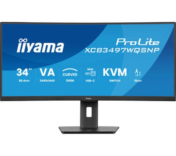 <h2>iiyama ProLite XCB3497WQSNP-B1</h2>Monitor iiyama ProLite XCB3497WQSNP-B1 z zakrzywionym ekranem 34-calowym podniesie na wyższy poziom wrażenia z gier i komfort pracy! Częstotliwość odświeżania 120 Hz i czas reakcji 0,4 ms zapewniają znakomitą płynność i ostrość obrazu, bez uciążliwego efektu smużenia.Wyświetlacz 34" zapewnia realistyczne efekty wizualne, szeroką gamę barw i wysoki kontrastPrzełącznik KVM (Keyboard-Video-Mouse) pozwala na łatwe przełączanie się pomiędzy wieloma komputerami Częstotliwość odświeżania 120 Hz – zawsze płynny i czytelny obrazCzas reakcji 0,4 ms zapobiega rozmyciu i utracie dynamiki w grachRozdzielczość Ultra Wide przekłada się na dużą powierzchnię ekranu – istotną w grach i wielozadaniowościZakrzywiony ekran sprzyja skupieniu, zapobiega zmęczeniu wzroku i zapewnia realistyczne wrażenia wizualneRedukcja niebieskiego światła ogranicza emisję światła dla większego komfortu oczuTechnologia Flicker-Free redukuje efekt migotania obrazu, który męczy wzrok<h2>Poznaj monitor iiyama ProLite XCB3497WQSNP-B1</h2> Duży, wyraźny ekranLepsze wrażenia wizualne w grach z monitorem iiyama ProLite XCB3497WQSNP-B1! Duży, 34-calowy wyświetlacz z matrycą VA (Vertical Alignment) LED (Light Emitting Diode) zapewnia szeroki kąt widzenia, pełną gamę kolorów, głęboką czerń i wysoki kontrast, co przekłada się na spójną jakość obrazu. Z tym urządzeniem możesz liczyć na realistyczne wrażenia wizualne w grach, filmach i relacjach na żywo, a także na komfortową pracę każdego dnia. Steruj wieloma komputerami W modelu iiyama ProLite XCB3497WQSNP-B1 znajdziesz przełącznik KVM, który pozwala na sterowanie wieloma komputerami i łatwe przełączenie się pomiędzy nimi za pomocą jednego monitora, myszy i klawiatury. To rozwiązanie, które sprawdza się w pracy wielozadaniowej, ale też w płynnej zmianie komputera służbowego na prywatny, gdy chcesz się zrelaksować, i odwrotnie. Zapomnij o przełączaniu kabli – użytkowanie wielu urządzeń jeszcze nigdy nie było tak proste! Płynność bez smużeniaCzęstotliwość odświeżania w prezentowanym monitorze wynosi 120 Hz. Dzięki temu obraz jest płynny i wyraźny bez uciążliwego efektu smużenia, nawet gdy grasz w wymagające gry lub oglądasz dynamiczny mecz. Model iiyama ProLite XCB3497WQSNP-B1 odświeża sygnał nawet kilka razy częściej niż standardowe monitory. Szybkie reakcjeCzas reakcji monitora ma ogromne znaczenie w grach, w których liczy się refleks i precyzja. W iiyama ProLite XCB3497WQSNP-B1 wynosi on 0,4 ms co przekłada się na ostrość obrazu w każdych okolicznościach. Zapomnij o błędach i rozmyciu – z tym monitorem nie przeszkodzą Ci w zwycięstwie! Wysoka rozdzielczość ekranuWykonywanie wielu zadań jednocześnie to Twoja codzienność? Wybierz monitor z rozdzielczością UWQHD (Ultra Wide Quad High Definition) 3440 x 1440 pikseli. Zapewnia on powierzchnię ekranu, którą tradycyjnie można uzyskać tylko po połączeniu kilku monitorów. Porównuj różne dokumenty obok siebie, działaj z kilkoma aplikacjami lub zyskaj szeroki widok na pole walki. Zakrzywiony ekranPoczuj się jak w centrum wydarzeń ulubionej gry, filmu czy koncertu! Monitor iiyama ProLite XCB3497WQSNP-B1 zapewnia takie doznania dzięki zakrzywieniu ekranu 1500R (promień krzywizny). Zainspirowany budową ludzkiego oka kształt sprzyja skupieniu, redukuje ryzyko rozproszenia, a podczas grania zwiększa immersję. Dzięki temu będziesz pracować efektywniej i osiągać lepsze wyniki w grach! W trosce o zdrowie oczuNadmierna ekspozycja na niebieskie światło emitowane przez ekrany może mieć negatywne skutki dla zdrowia. Dlatego w iiyama ProLite XCB3497WQSNP-B1 zastosowano technologię Blue Light Reducer, która redukuje jego emisję, a tym samym chroni wzrok. Z kolei technologia Flicker-free opiera się na kontroli jasności ekranu poprzez regulację natężenia prądu, dzięki czemu niweluje problem migotania, który może przyczyniać się do zmęczenia oczu. Głośniki i wejście słuchawkoweNiezależnie od tego, czy grasz, oglądasz film z przyjaciółmi, czy skupiasz się na samodzielnej pracy, monitor iiyama ProLite XCB3497WQSNP-B1 zapewni Ci potrzebne rozwiązania. Użyj głośników, gdy chcesz czerpać wrażenia dźwiękowe bez ograniczeń, lub skorzystaj z wejścia słuchawkowego, gdy w danym momencie chcesz mieć audio tylko dla siebie i nie chcesz nikomu przeszkadzać. <h2>Zawartość opakowania iiyama ProLite XCB3497WQSNP-B1</h2>W opakowaniu Monitor Kabel HDMI (High-Definition Multimedia Interface) Kabel DisplayPort (uniwersalny interfejs cyfrowy) Kabel USB (Universal Serial Bus) Kabel USB-C (Universal Serial Bus typu C) Kabel zasilający Podstawa Skrócona instrukcja obsługi Instrukcja bezpieczeństwaiiyama - marka godna zaufaniaJakość doceniana przez użytkowników na całym świecieZnakomity stosunek parametrów monitorów do cenyMarka specjalizująca się w produkcji monitorówCzołowy producent w skali międzynarodowejFirma założona w 1973 rokuPierwszy na świecie producent kolorowych 15-calowych monitorów