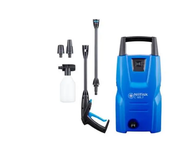 <h2>Nilfisk C 110.7-5 EU 128470920</h2><p>Nilfisk C 110.7-5 EU 128470920 pomoże Ci w pracach porządkowych w ogrodzie i na podwórku – myjka ciśnieniowa z aluminiową pompą i ciśnieniem maksymalnym 110 barów spełni Twoje oczekiwania.</p><h2>Poznaj Nilfisk C 110.7-5 EU 128470920</h2><a></a><h3>CIŚNIENIE 110 BARÓW</h3><p>Myjka ciśnieniowa Nilfisk C 110.7-5 EU 128470920 osiąga maksymalne ciśnienie 110 barów, co jest wystarczające przy czyszczeniu lekko i średnio zabrudzonych powierzchni. Za pomocą tego urządzenia z powodzeniem umyjesz zatem meble ogrodowe, rowery czy tarasy. Okaże się także przydatne podczas mycia samochodów.</p><a></a><h3>FUNKCJA AUTO-STOP</h3><p>Prezentowana myjka ciśnieniowa jest urządzeniem wysoce oszczędnym w działaniu, a tym samym ekologicznym. Zapewnia to funkcja auto-stop, dzięki której od razu po zwolnieniu przycisku następuje zatrzymanie pracy silnika i pompy – prace porządkowe jeszcze nigdy nie były tak proste!</p><a></a><h3>TRWAŁA POMPA</h3><p>Nilfisk C 110.7-5 EU 128470920 wyposażony został w aluminiową pompę, wyróżniającą się wysoką trwałością i wytrzymałością. Przekłada się to na dłuższą pracę myjki, bez niechcianych awarii i uszkodzeń.</p><h2>Myjka ciśnieniowa Nilfisk C 110.7-5 EU 128470920 z bliska</h2><h3>1 5-METROWY WĄŻ</h3><p>W wyposażeniu urządzenia Nilfisk C 110.7-5 EU 128470920 znajduje się 5-metrowy, wysokociśnieniowy wąż, dający spory zasięg i swobodę ruchów podczas prac porządkowych.</p><h3>2 KOMPAKTOWY DESIGN</h3><p>Prezentowana myjka ciśnieniowa jest lekka i ma niewielkie wymiary. W związku z tym zarówno jej przechowywanie, jak i przenoszenie nie sprawi Ci najmniejszych trudności.</p><h3>3 SYSTEM CLICK&CLEAN</h3><p>Nilfisk C 110.7-5 EU 128470920 obsługuje system złączy Click&Clean, co pozwala na łatwe dobieranie i przyłączanie akcesoriów do myjki ciśnieniowej.</p><h2>W opakowaniu Nilfisk C 110.7-5 EU 128470920</h2><h6>1Myjka ciśnieniowa</h6><h6>2Dysza Tornado</h6><h6>3Dysza wysokociśnieniowa</h6><h6>4Lanca pianowa</h6><h6>5Wąż wysokociśnieniowy</h6><h6>6Zbiornik na detergent</h6><h6>7Instrukcja obsługi</h6><h6>8Karta gwarancyjna</h6><h2>Nilfisk – marka godna zaufania</h2><p>Jeden z wiodących producentów maszyn czyszczących</p><p>Duńska marka doceniana na całym świecie</p><p>Marka założona w 1906 roku</p>