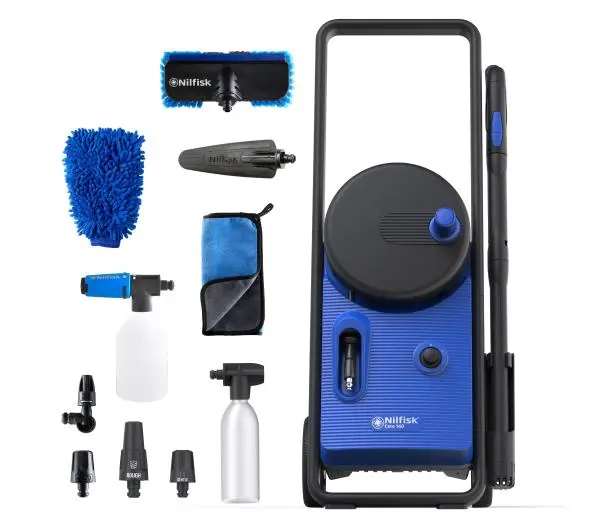 Wyposażenie: dysza do podwozi, dysza Powerspeed, dysza samochodowa, dysza Tornado, instrukcja obsługi, karta gwarancyjna, lanca, pianownica, pistolet, ręcznik, rękawica do mycia, spryskiwacz, szczotka