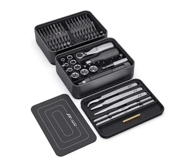 <h2>JIMI Home FM-3 Zestaw wkrętaków (100 sztuk)</h2><p>Zestaw śrubokrętów FM-3, zawierający aż 100 elementów, będzie idealny w rękach każdego profesjonalisty, którego praca polega na naprawianiu drobnych elementów, takich jak sprzęt elektroniczny, komputery, telefony komórkowe itp. Ten poręczny zestaw będzie również przydatny do drobnych napraw w domu, samochodzie lub na rowerze, a jego kompaktowa konstrukcja pozwoli Ci zabrać go wszędzie.</p> <h2>Zestaw narzędzi podzielony na kilka poziomów.</h2><p>Ze względu na kompaktową budowę, obudowa zestawu została podzielona na trzy moduły, które po złożeniu tworzą łatwą do przenoszenia i przechowywania całość. Taki zestaw jest łatwy do przewożenia w samochodzie, zmieści się w plecaku lub większej skrzynce narzędziowej. Obudowa jest wykonana z wytrzymałego tworzywa ABS i jest pomalowana metaliczną farbą dla uzyskania bardziej estetycznego wyglądu.</p> <h2>Mata magnetyczna</h2><p>Mata magnetyczna na pierwszym poziomie zestawu sprawia, że nawet najmniejsze metalowe części, takie jak śruby, nie wypadają i nie stracisz czasu na ich szukanie. Na macie znajdują się również pola, które ułatwiają kategoryzację części na blacie roboczym.</p> <h2>Dokładny montaż</h2><p>Pod matą magnetyczną jest miejsce na trzy różne rodzaje pincet. Ponadto w zestawie znajdują się dwa ostrza klinowe, które pomagają delikatnie otwierać naprawiane urządzenia. Za pomocą ostrzy można na przykład dostać się do wnętrza telefonu w celu jego głębokiego wyczyszczenia lub wymiany podzespołów, minimalizując ryzyko zarysowania lub uszkodzenia obudowy.</p> <h2>Moduł pomocniczy</h2><p>Zestaw zawiera klucz z grzechotką i uchwyt wkrętaka, a także przydatne przedłużki i adaptery oraz odpowiednie końcówki. Zakres końcówek dla klucza z grzechotką wynosi od 5 do 13, a dla wkrętaków H5, H4, H3, 5PH2, 5PH1, 3PH1, SL5, SL3 jest 8 podstawowych końcówek o rozmiarze 6,35 mm.</p> <h2>duża liczba bitów</h2><p>W dolnej części zestawu swoje miejsce znalazło 48 końcówek 4 mm i 20 końcówek 6,35 mm. Naciśnięcie przycisku powoduje, że bity unoszą się pionowo do góry, co ułatwia wyciąganie każdego z nich. Pod nimi znajduje się pojemnik na śruby i wkręty, a także magnetyzer i demagnetyzer dla każdego elementu.</p>